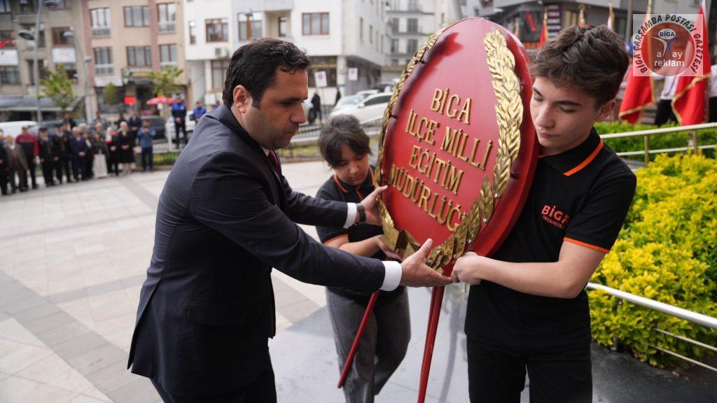 23 Nisan Ulusal Egemenlik ve Çocuk Bayramı kutlamaları saat 11.00’de Cumhuriyet Meydanı’nda çelenk sunma töreni ile başladı. Protokol üyeleri, okul temsilcileri, öğrenciler, Biga Halkı ve basın mensuplarının katılımı ile başlayan törende Biga İlçe Milli Eğitim Müdürlüğü çelenk sunumu Biga İlçe Milli Eğitim Müdürü Muhammet Nazlıcan tarafından yapıldı. Saygı duruşunun ardından İstiklal Marşı okundu ve Cumhuriyet Meydanı’ndaki tören sona erdi.