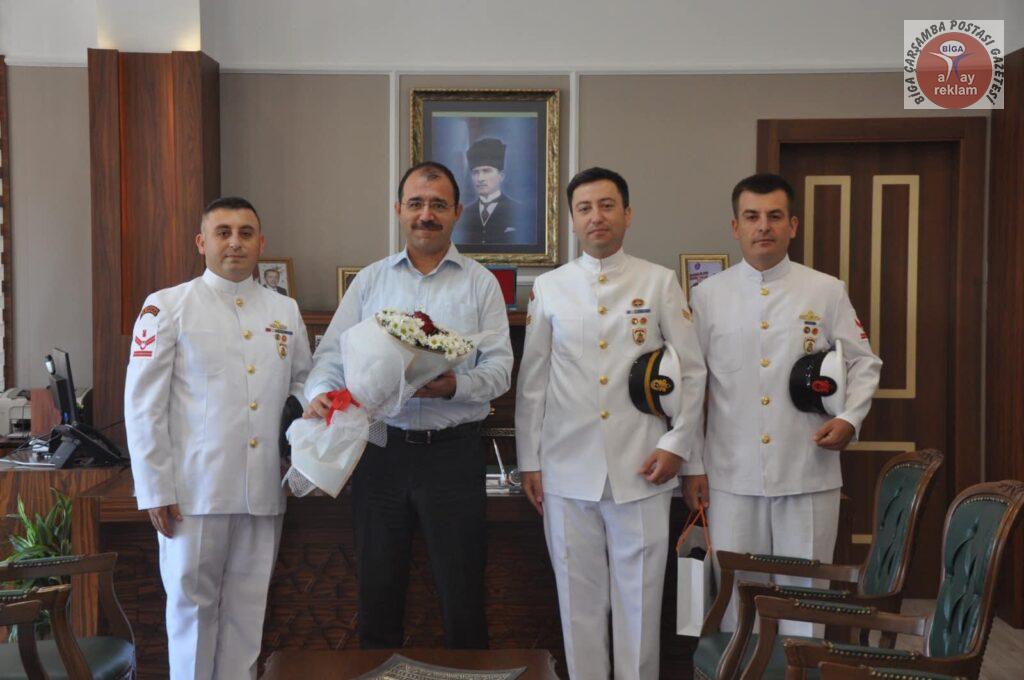 Sahil Güvenlik Komutanlığı’nın 42. kuruluş yıl dönümü nedeniyle Biga Kolluk Destek Tim Komutanı Kd. Astsubay Korhan Alp Gölcik ve Biga Kolluk Destek Tim Komutanlığı personelleri, Biga Kaymakamı Erdinç Dolu’yu makamında ziyaret ettiler.