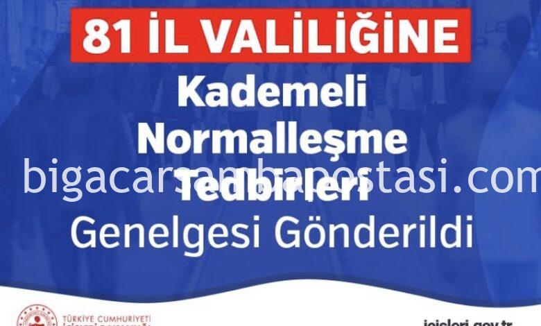 Bu çerçevede salgınla mücadelede sıkı tedbirlerin alındığı 14 Nisan 2021 – 17 Mayıs 2021 tarihleri arasında uygulanan kısmi ve tam kapanma dönemleri sonrasında 17 Mayıs 2021 tarihinden bu yana etaplar halinde “kademeli normalleşme” süreci yürütülmektedir.