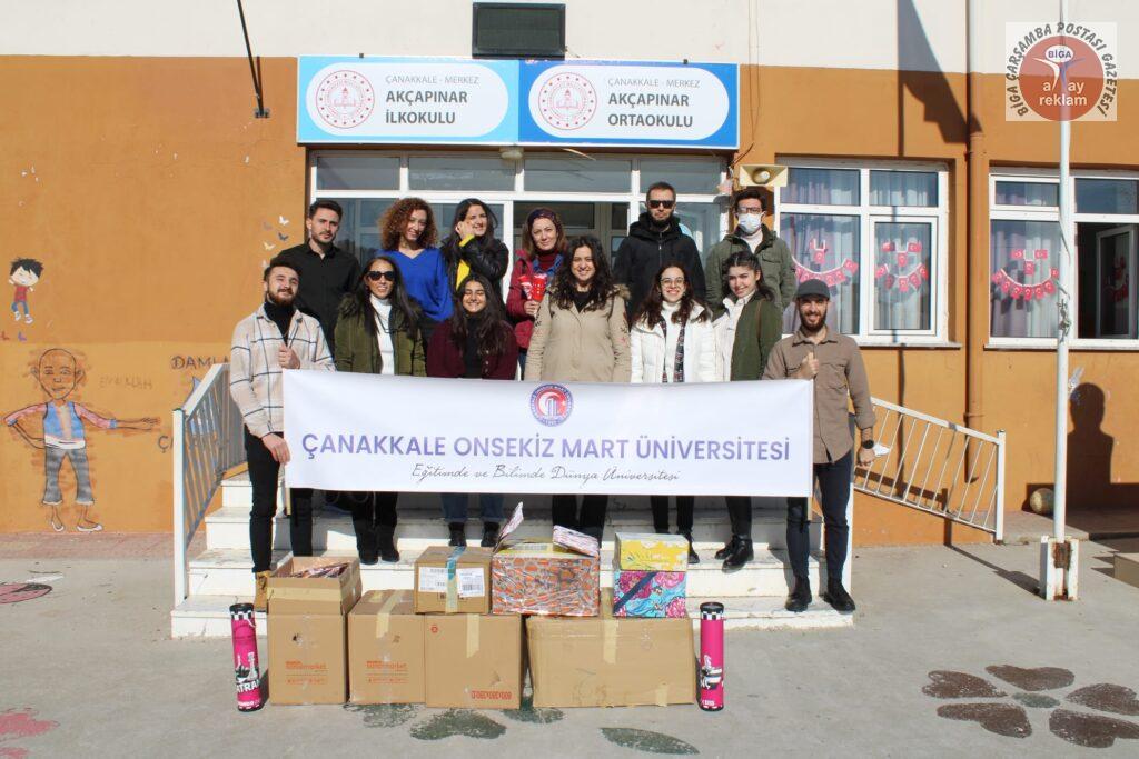 Çanakkale Onsekiz Mart Üniversitesi adı altında gerçekleştirilen sosyal sorumluluk projelerinde bir mutlu son daha yaşandı. Üniversite öğrencilerinin gerçekleştirdiği sosyal sorumluluk projeleri kapsamında, Çanakkale’nin Merkez ilçesine bağlı Akçapınar İlkokulu destek kampanyası başlatılan 50. köy okulu oldu. Akçapınar İlkokulu’nda eğitim gören 60 minik için kampanya başlatan öğrenciler; kırtasiye eşyaları ve kıyafetleri paketleyerek miniklere hediye ettiler. Etkinlik kapsamında miniklere çikolata ve Türk bayrağı da dağıtıldı. Öğretmenleri unutmayan gönüllü öğrenciler, onlar için de hazırladıkları hediye paketlerini teslim ettiler. 30 Aralık tarihinde başlatılan destek kampanyası, gönüllü öğrencilerin itinalı çalışmasıyla bir haftada tamamlandı. Maddi imkansızlıklar nedeni ile yaşanan kırtasiye ve kıyafet eksikliği Sosyal Sorumluluk Projelerinden Sorumlu Rektör Danışmanı Doç. Dr. Hicran Özlem Ilgın ve Öğr. Gör. Şaziye Ceren Ulupınar koordinatörlüğünde tedarik edildi. Etkinliğe Çanakkale Onsekiz Mart Üniversitesi’nde bulunan farklı fakülte ve bölümde eğitim gören çok sayıda gönüllü öğrenci katıldı. Sosyal sorumluluk projeleri hız kesmeden devam edecek. Yardım kampanyalarından haberdar olmak ve projelerde gönüllü olarak çalışmak için Instagram üzerinden @comusosyalgonullulertoplulugu hesabını takip edebilirsiniz. Konuya ilişkin detayları, yardım kampanyası fikirlerinizi, soru ve önerilerinizi comusosyalgonulluler@gmail.com mail adresine gönderebilirsiniz.