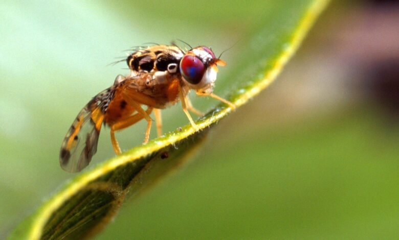 Erginleri genellikle ev sineğinin 2/3’ü büyüklüğündedir. Vücudun genel rengi sarımsı kahverengidir. Baş sarı, gözleri büyük, yeşil madeni pırıltılı, kenarları kırmızıdır. Kanatları geniş olup üzerinde siyah ve soluk kahverengimsi şeritler vardır. Yumurtaları mekik şeklinde ve beyazdır. Larvası beyaz ve bacaksızdır. Pupa koyu kahverengi renkte olup, fıçı şeklindedir.