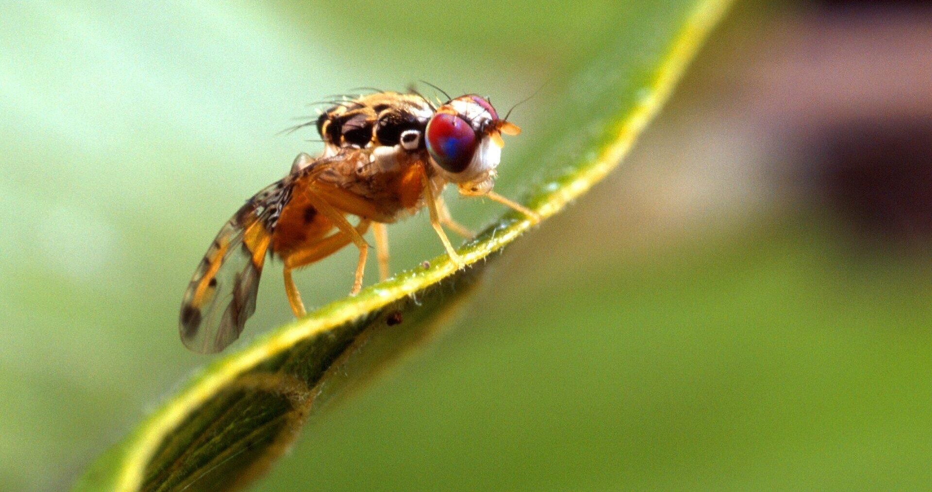 Erginleri genellikle ev sineğinin 2/3’ü büyüklüğündedir. Vücudun genel rengi sarımsı kahverengidir. Baş sarı, gözleri büyük, yeşil madeni pırıltılı, kenarları kırmızıdır. Kanatları geniş olup üzerinde siyah ve soluk kahverengimsi şeritler vardır. Yumurtaları mekik şeklinde ve beyazdır. Larvası beyaz ve bacaksızdır. Pupa koyu kahverengi renkte olup, fıçı şeklindedir.