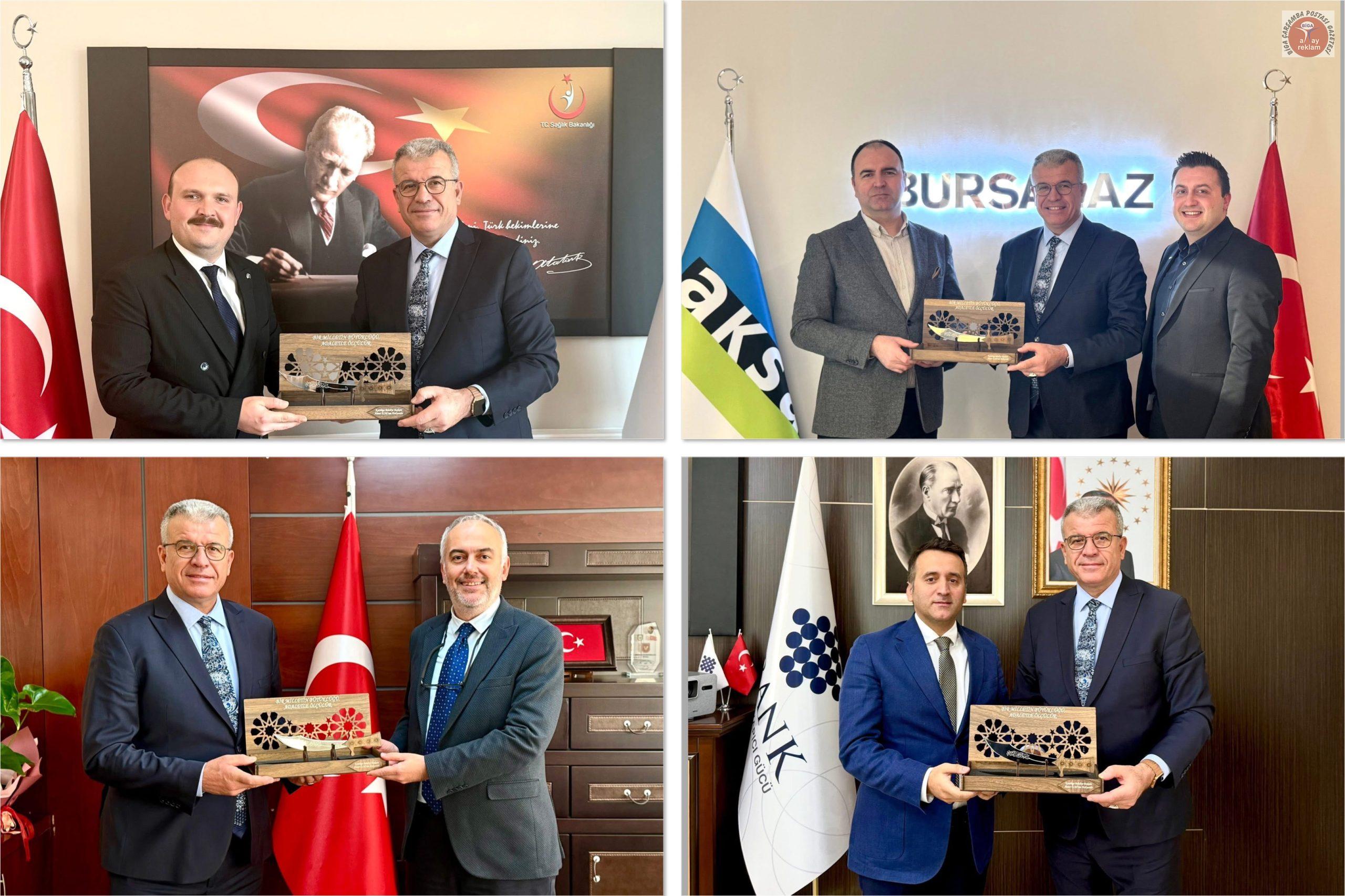İLBANK Bursa Bölge Müdürü Harun Soner Okutan, Bursa İl Sağlık Müdürü Uzm. Dr. Mustafa Çetin, Bursa Şehir Hastanesi Başhekimi Doç.Dr.Salih Metin ve AKSA Bursa Doğalgaz Şirket Müdürü Çağdaş Adıbelli’ye ziyaretlerde bulunana Başkan Elbi bir çok konuda istişare etti.