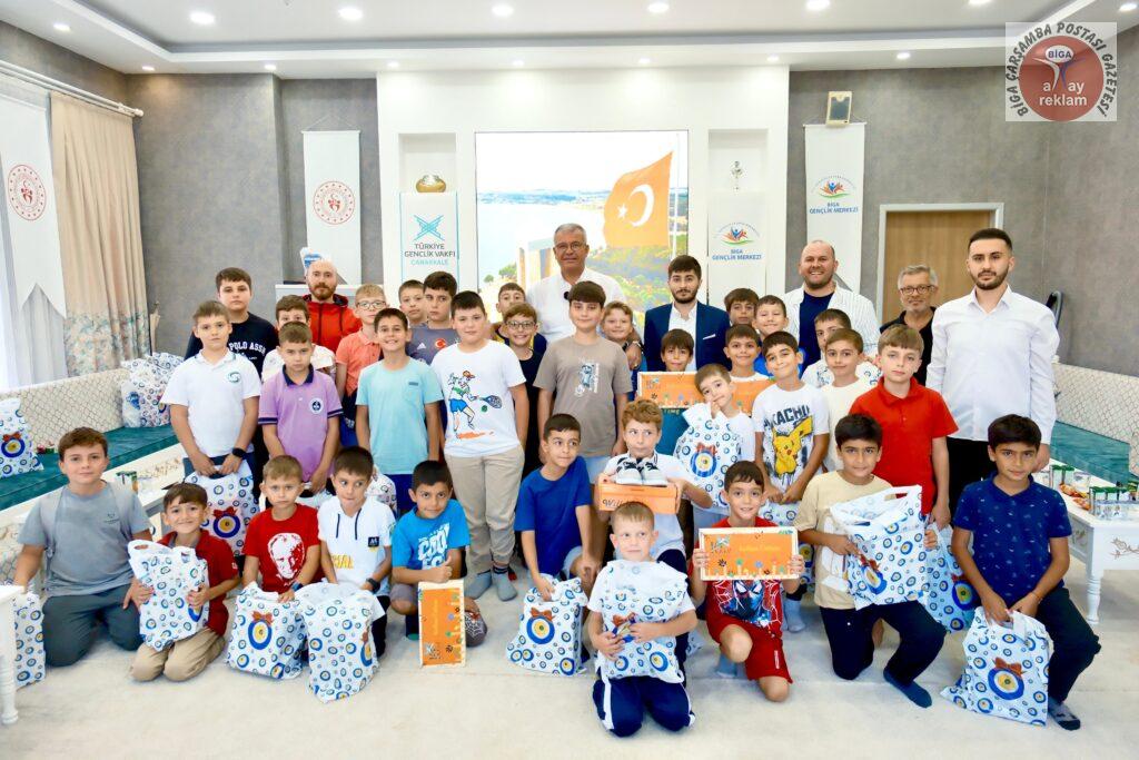 Karabiga Belediye Başkanı Ahmet Elbi, TÜGVA Yaz Okulu Kapanış Programı’nda verdiği sözü tutarak, ilkokul ve ortaokul öğrencilerinden oluşan 38 çocuğa spor ayakkabı hediye etti. Gençlik Merkezi’nde düzenlenen buluşmada Başkan Elbi, çocuklarla hem keyifli anlar yaşadı hem de gelecek vizyonunu paylaştı.