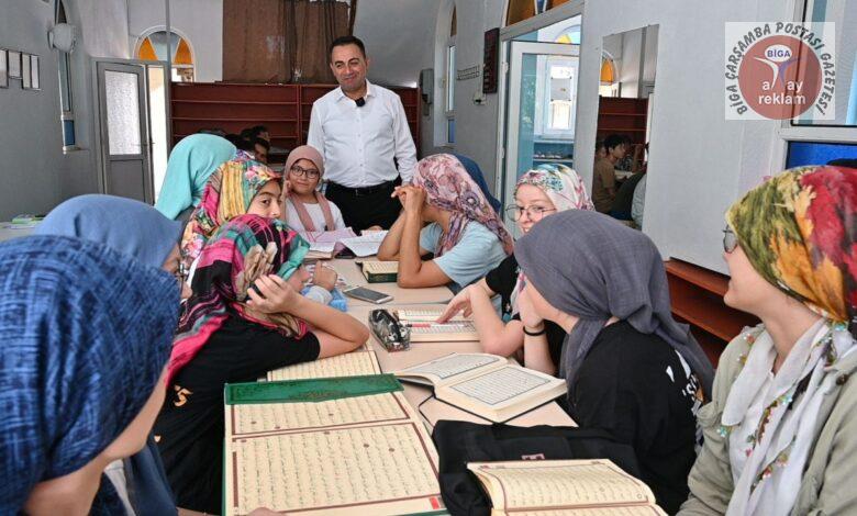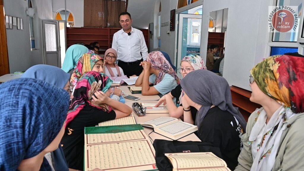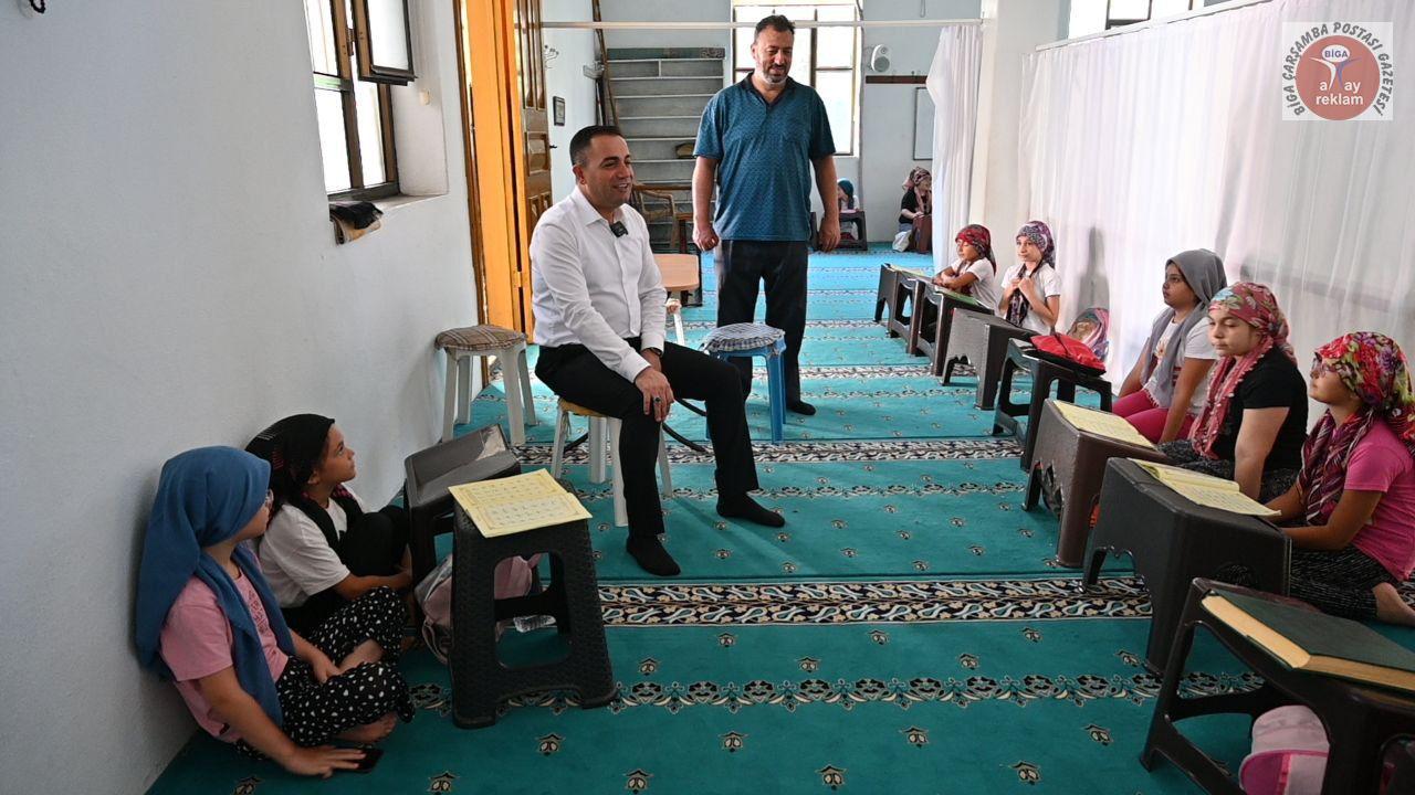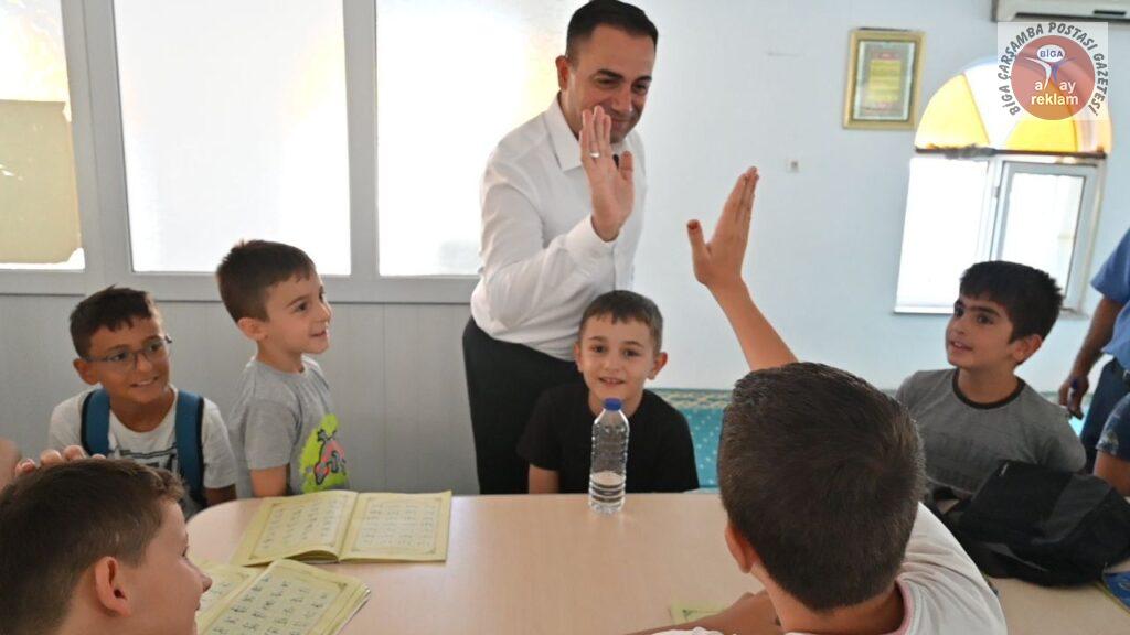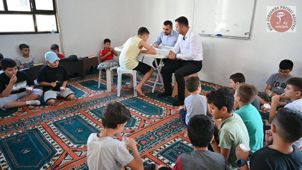 Yaz mevsiminin gelmesiyle birlikte Biga’daki çeşitli cami ve merkezlerde açılan yaz Kur’an kursları, çocukların dini eğitimlerine katkı sağlamanın yanı sıra yaz tatillerini daha verimli geçirmelerine olanak tanıyor. Bu kapsamda Biga Belediye Başkanı Bülent Erdoğan da öğrencilere destek olmak ve onlarla bir araya gelmek amacıyla yaz Kur’an kurslarını ziyaret etti.