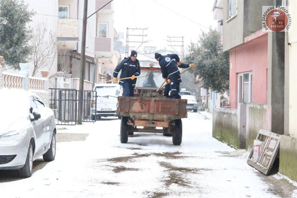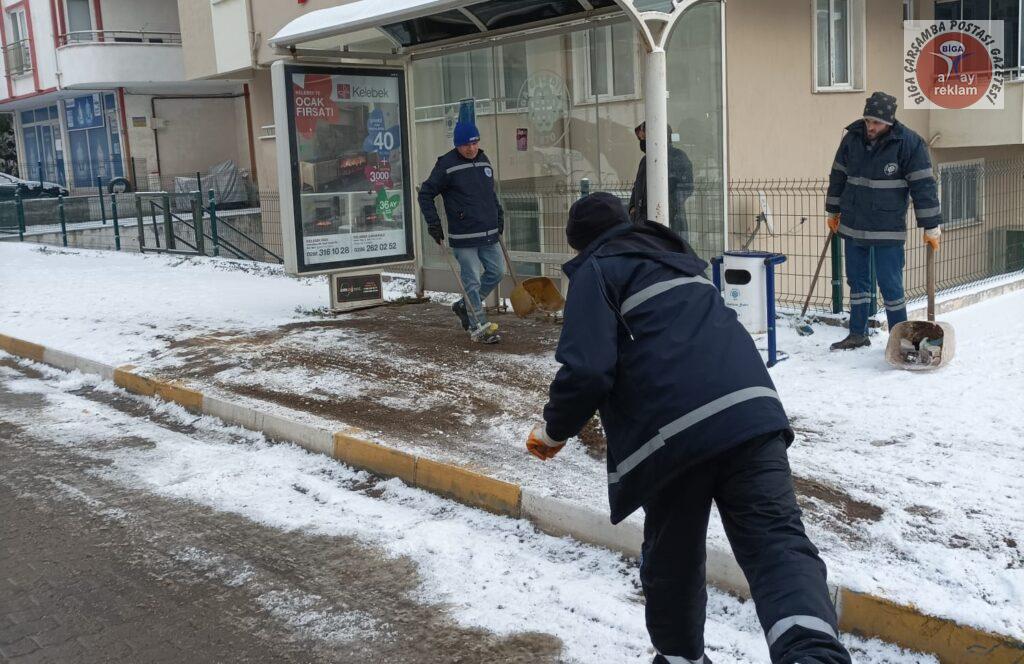 Biga Belediye Başkanı Bülent Erdoğan yaptığı açıklamada, “Biga’mızda etkisini gösteren kar yağışına karşı teyakkuzdayız. Ekiplerimiz yollarda küreme ve tuzlama çalışmalarına devam ediyor. Şehir merkezimizde kar kalınlığı yaklaşık 5 santimetre olurken ekiplerimiz herhangi bir olumsuzluk yaşanmaması için canla başla çalışmalarını sürdürüyor. Yol temizleme, tuzlama ve açma işlemi yapan ekiplerimiz, vatandaşlarımızın mağdur olmaması için mücadele ediyor. Şu anda şehir merkezimizde tüm ana ve ara halterler açık durumdadır ama don ve buzlanma olaylarına karşı dikkatli olmalıyız. Kıymetli hemşehrilerimize zorunlu olmadıkça araçlarıyla trafiğe çıkmamalarını tavsiye ediyoruz. Herhangi bir olumsuzluğa karşı Alo 153 veya 315 00 00 telefon numarasından ve 0530 133 18 60 WhatsApp hattından bizlere 7/24 ulaşabilirler” dedi.
