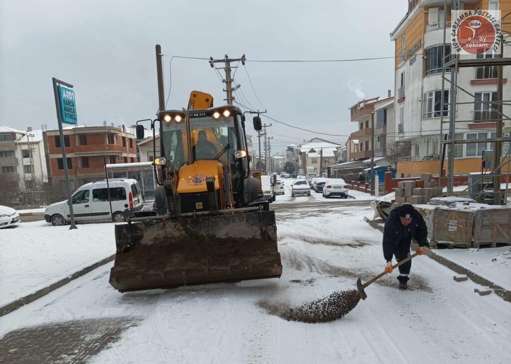 Biga’da etkisini artıran kar yağışında ilçe merkezi ve köyleri beyaza bürünürken, Biga Belediyesi ekipleri şehrin dört bir yanında kar küreme ve tuzlama çalışmalarını sürdürüyor.