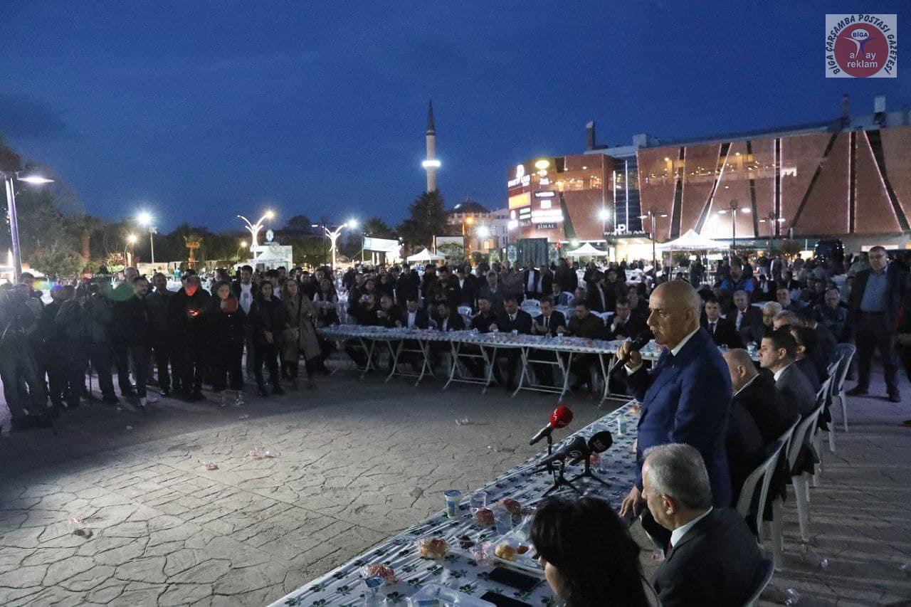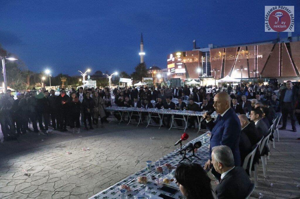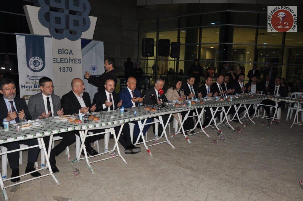 Ramazan ayı vesilesiyle 14 Nisan Cuma akşamı Biga Belediyesi meydanında iftar programı düzenlerdi. Yoğun katılımın olduğu iftar yemeğine Tarım ve Orman Bakanı Prof. Dr. Vahit Kirişçi, AK Parti Grup Başkanvekili Bülent Turan, AK Parti Milletvekili Jülide İskenderoğlu, CHP Milletvekili Özgür Ceylan, Biga Kaymakamı Erdinç Dolu, Biga Belediye Başkanı Bülent Erdoğan, protokol üyeleri, oda ve kurum başkanları, siyasi parti temsilcileri, STK’lar, meclis üyeleri, dernek başkanları, Biga halkı, Biga’ya gelen misafirler ile birlikte yaklaşık 7bin kişi katıldı.