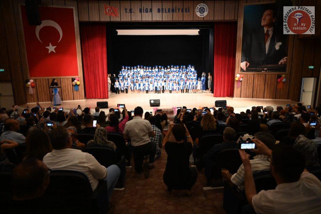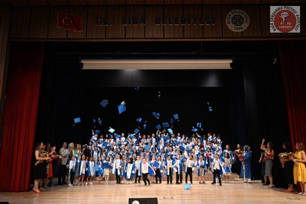 Biga Belediyesi’ne bağlı olarak hizmet veren Hamdi Gençoğlu, Atatürk Kültür Merkezi ve Eczacı Zübeyde Aydın Kreş ve Gündüz Bakımevlerinin öğrencileri mezuniyet töreni düzenleyerek kep attı.