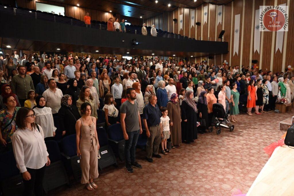 Kreşlerden mezun olan 102 öğrenci için Atatürk Kültür Merkezi konferans salonunda düzenlenen mezuniyet törenine Biga Belediye Başkanı Bülent Erdoğan ve eşi Feride Erdoğan, Biga Cumhuriyet Başsavcısı Eren Öztaş, Biga İlçe Milli Eğitim Müdürü Erkan Bilen, kreş müdürleri ve öğretmenleri, öğrenciler ve aileleri katıldı.