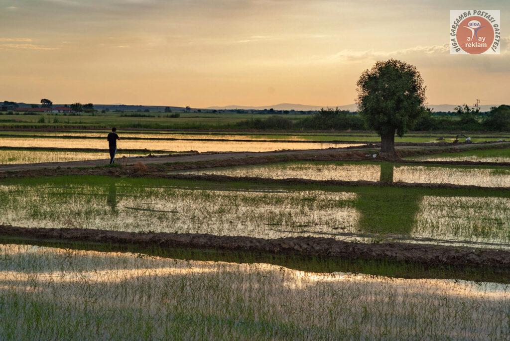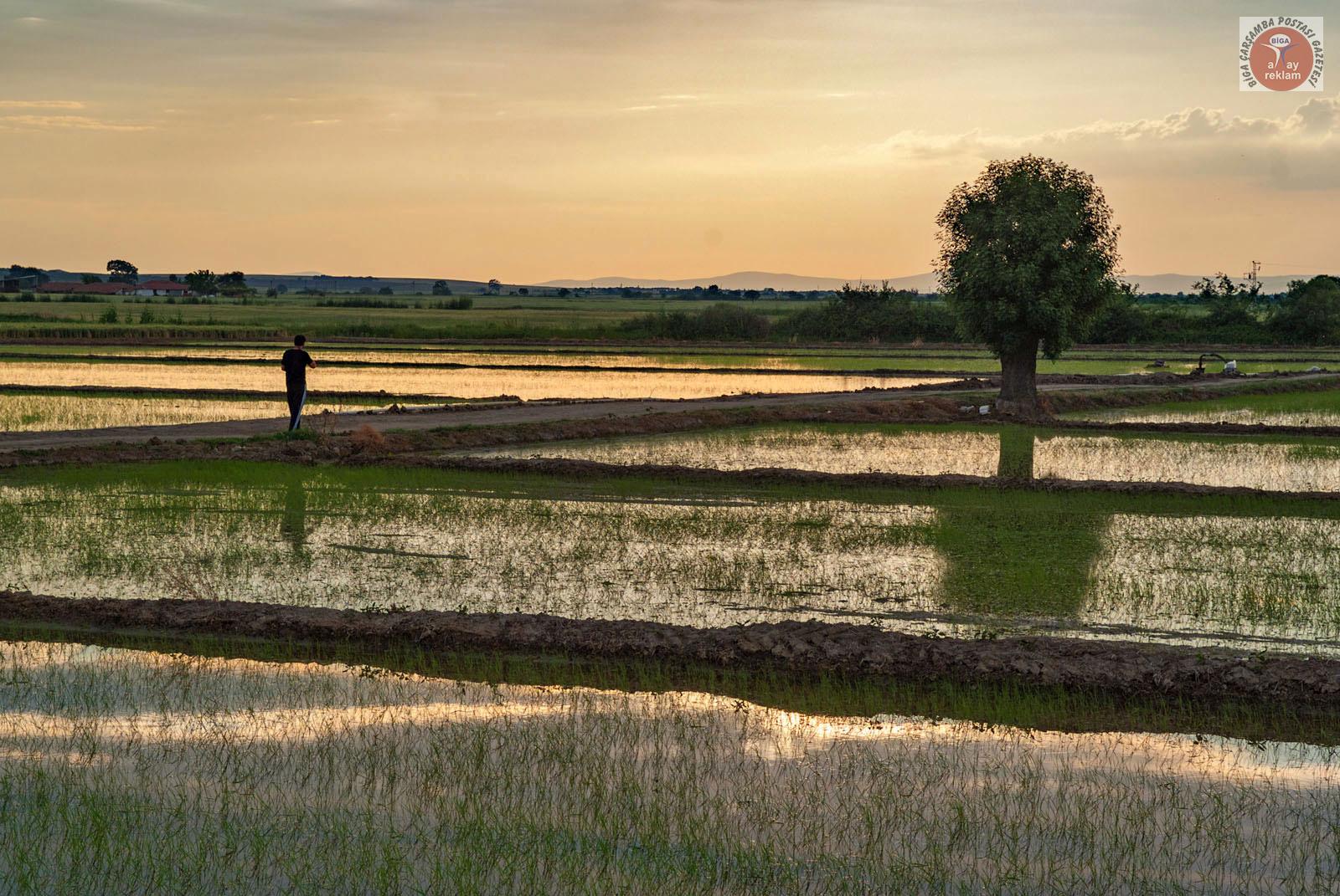 Şurasında ne kaldı ki Mayıs’a… Seçimde oyları atınca çıkarız yola; gözlerimize ilkbaharın coşkusu yansır, burnumuza kokusu. Yalova yanımızda çiçek seraları sonra Bursa yolunun yokuşu, tepede nefes alır, aşağı ineriz, sola döneriz, Biga ya gittiğimizi pekiştiririz bilincimezde. Tarlalar, emekçiler, yeşiller, sarılar… Renkler içinde geçer gideriz. Yorgun köylülere baka baka tarlanın ilkbahar rengini, yeşilin keyfini yüreğimize haps ederek gideriz. Arkada Biga daha netleşir bilincimizde. Ne zaman Gerlengeç Köyü’nden Kumkent yoluna saparsak o zaman hakikat olur düştekiler. Sanki bizim bağa geldik, Kemaliye(eğin)deki bağa. İşte bizim tarlalar yine çeltik yolun iki kıyısında. Ben daha öncesini domates tarlalarını düşümde netleştirmiştim oysa. Çeltik tarlalarında ki suya bir emekçinin yansıması düşmüşse makine hazır arkada deklanşönre basarım.