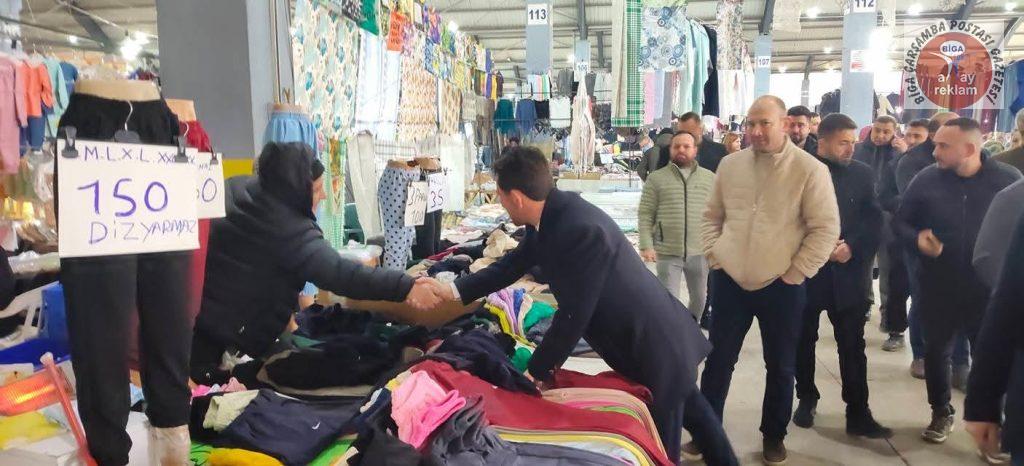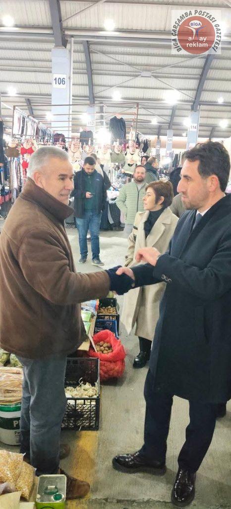 Başkan Berber ilk olarak Biga Kapalı Pazar Yeri’nde pazarcı esnafını ziyaret ederek kendisine verdikleri destekten dolayı tek tek teşekkür etti. Esnafla sohbet eden Berber, yeni dönemde tüm esnaf ve sanatkârların yanında olacaklarını vurguladı.