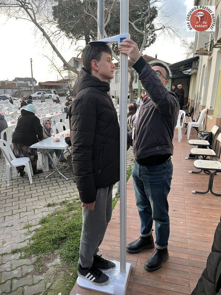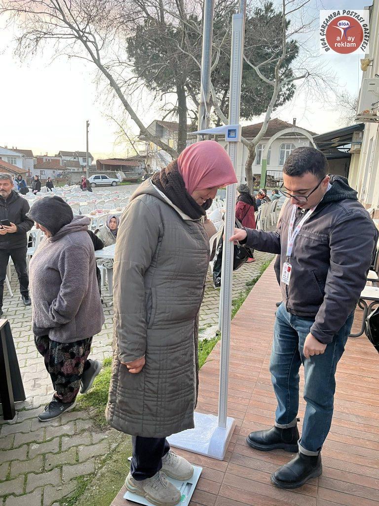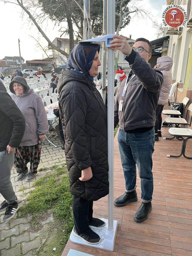 Ayrıca gönüllü vatandaşlara, Biga İlçe Sağlık Müdürlüğünde görevli Diyetisyen Aydın Kara tarafından boy ve kilo ölçümü gerçekleştirildi.