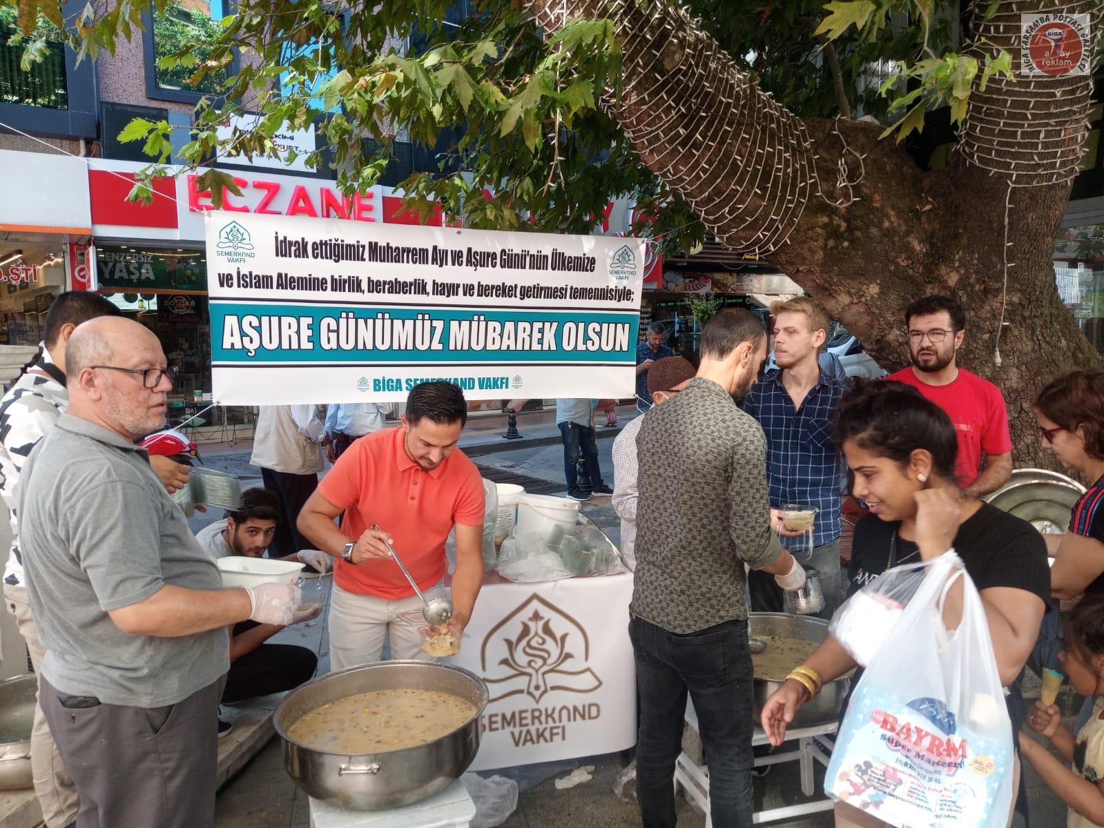 Organizasyonda açıklama yapan Biga Semerkand Vakfı Başkanı Şaban Tunçman, Muharrem ayı dolayısıyla hem bu özel ayı yaşamak hem de her yıl olduğu gibi yaşatmak adına Biga halkına ve esnafına 2.000 kişilik aşure dağıttıklarını, inancımızda ve kültürümüzde önemli bir yere sahip olan aşure gününü bir kere daha yad ettiklerini belirtirken Muharrem ayının birlik, beraberlik, huzur ve barışa vesile olması temennisinde bulundu.