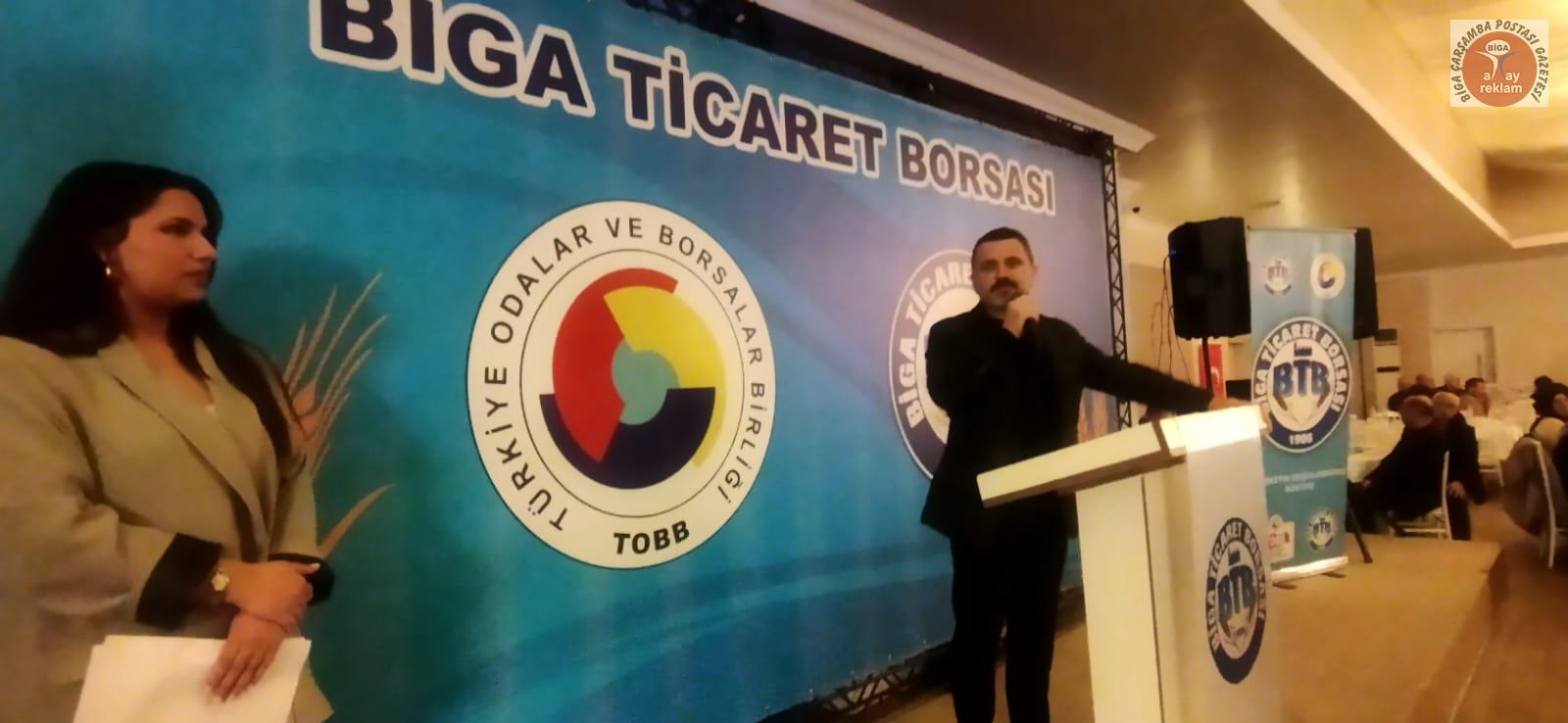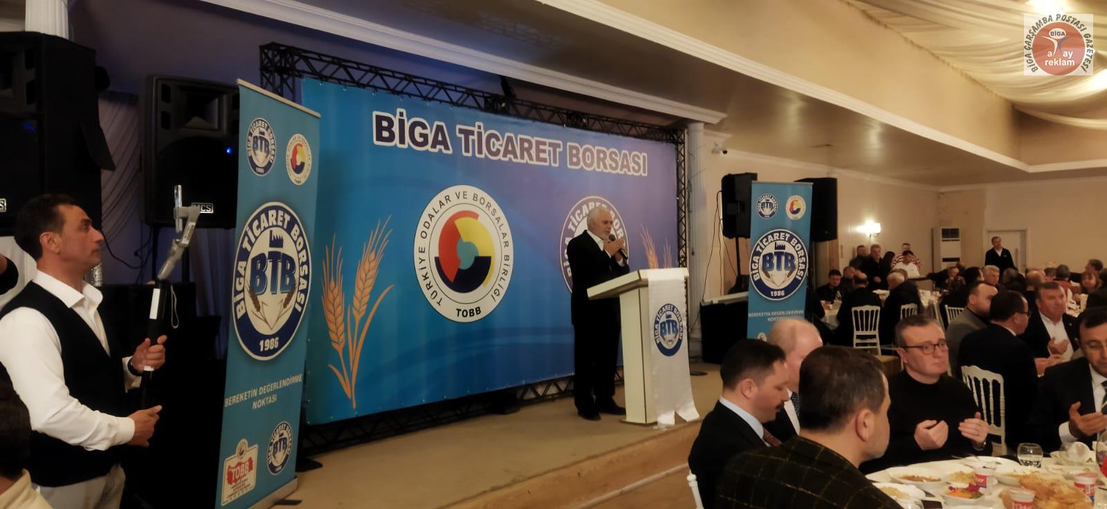 İftar yemeğinin ardından katılımcılara hitaben kürsüye çıkan Biga Ticaret Borsası Başkanı Bülent Baş, “Biga Ticaret Borsası iftar yemeği programına hoşgeldiniz şeref verdiniz. Sevgili misafirler bilindiği gibi Ramazan ayı, onbir ayın sultanı sabır, ibadet, rahmet, mağfiret ve bereket ayıdır. Bizler de bu duygularla yola çıkarak üyelerimizle geçen yıl olduğu gibi bu yıl iftarımızı hep birlikte yapmak istedik.
