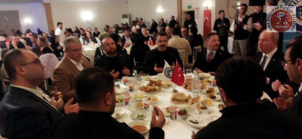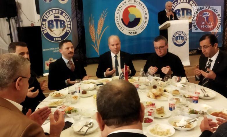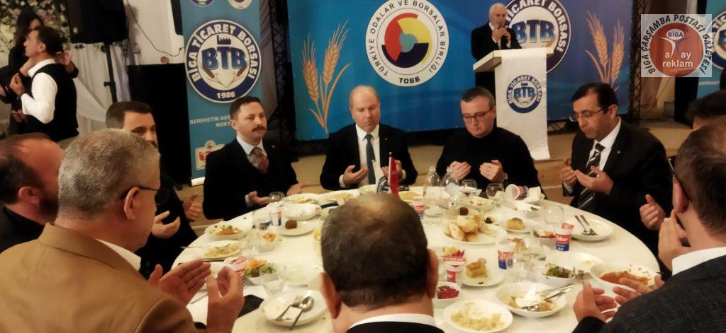 Yapılan duaların ardından iftar yapıldı. İftar yemeğine Biga Protokolü, oda ve dernek başkan ile yöneticileri, siyasi parti temsilcileri, Ticaret Borsası üyeleri, misafirler ve basın mensupları katıldılar.
