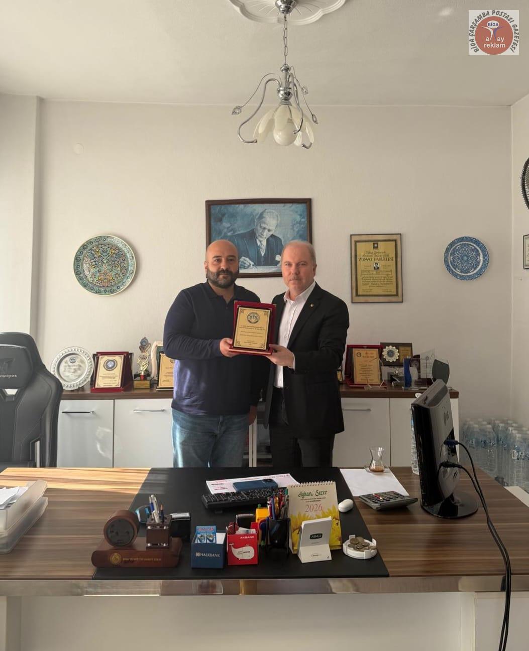 Biga Ticaret Borsası Yönetim Kurulu, üye ziyaretleri kapsamında bugün bir dizi anlamlı buluşma gerçekleştirerek üyelerine teşekkür plaketi takdim etti.