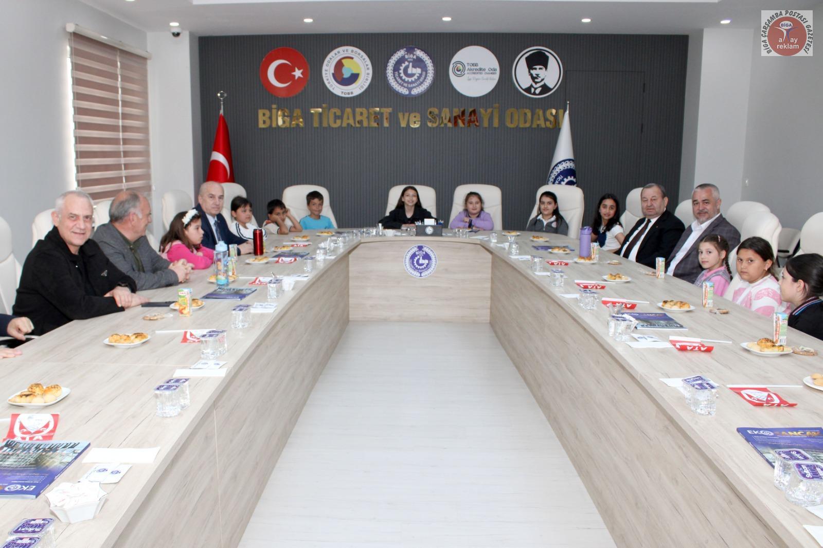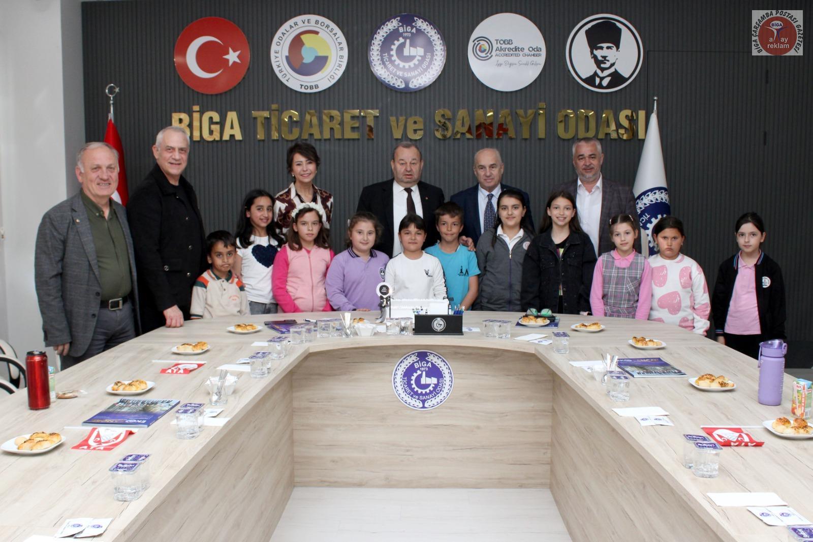 23 Nisan Ulusal Egemenlik ve Çocuk Bayramı etkinlikleri kapsamında Biga’da öğrenim gören başarılı öğrenciler, Biga Ticaret ve Sanayi Odası’nı ziyaret ederek yönetimi bir günlüğüne devraldı.