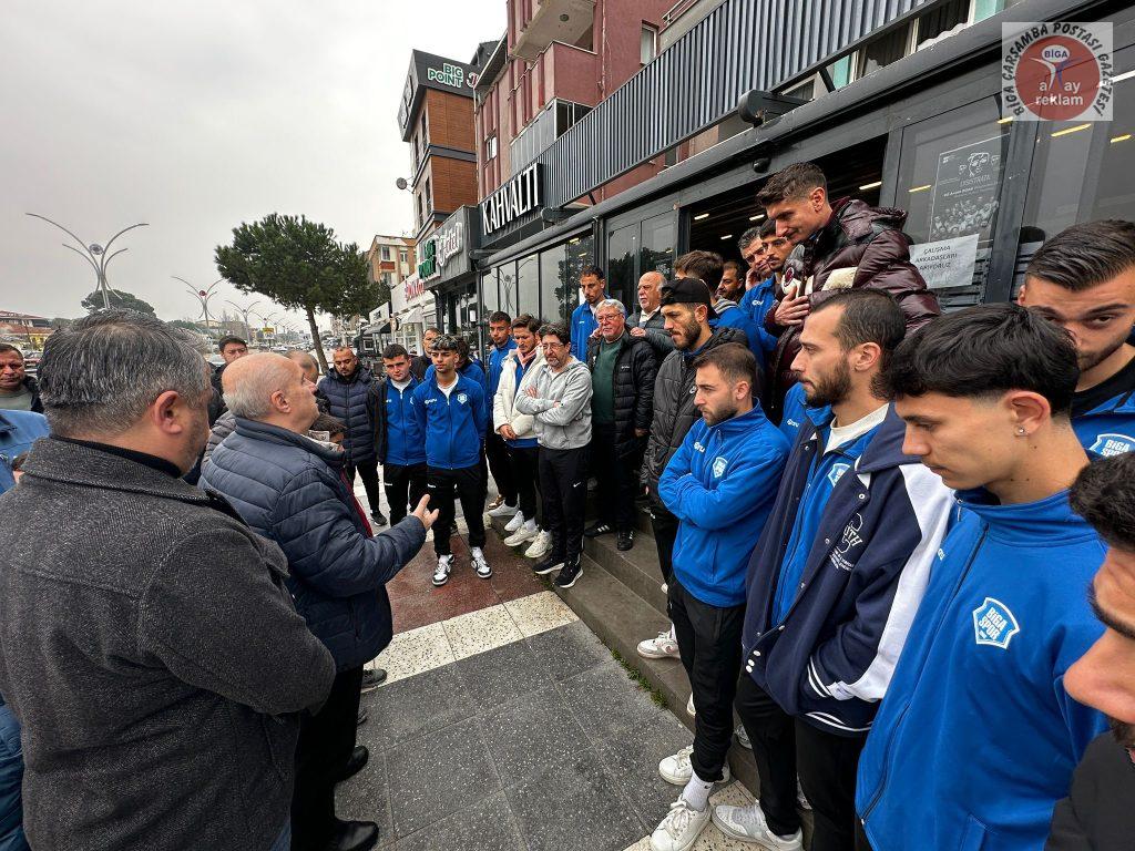 Kahvaltı sonrası kısa bir konuşma yapan Başkan Şadan Doğan, “Bugün Ergene Velimeşespor karşısında ter dökecek futbolcu kardeşlerimize moral vermek istedik. Sahada Biga’mızı en iyi şekilde temsil edeceklerine inancımız tam. Şehrimizin markası Bigaspor’a bugünkü maçta yürekten başarılar diliyorum” ifadelerini kullandı.
