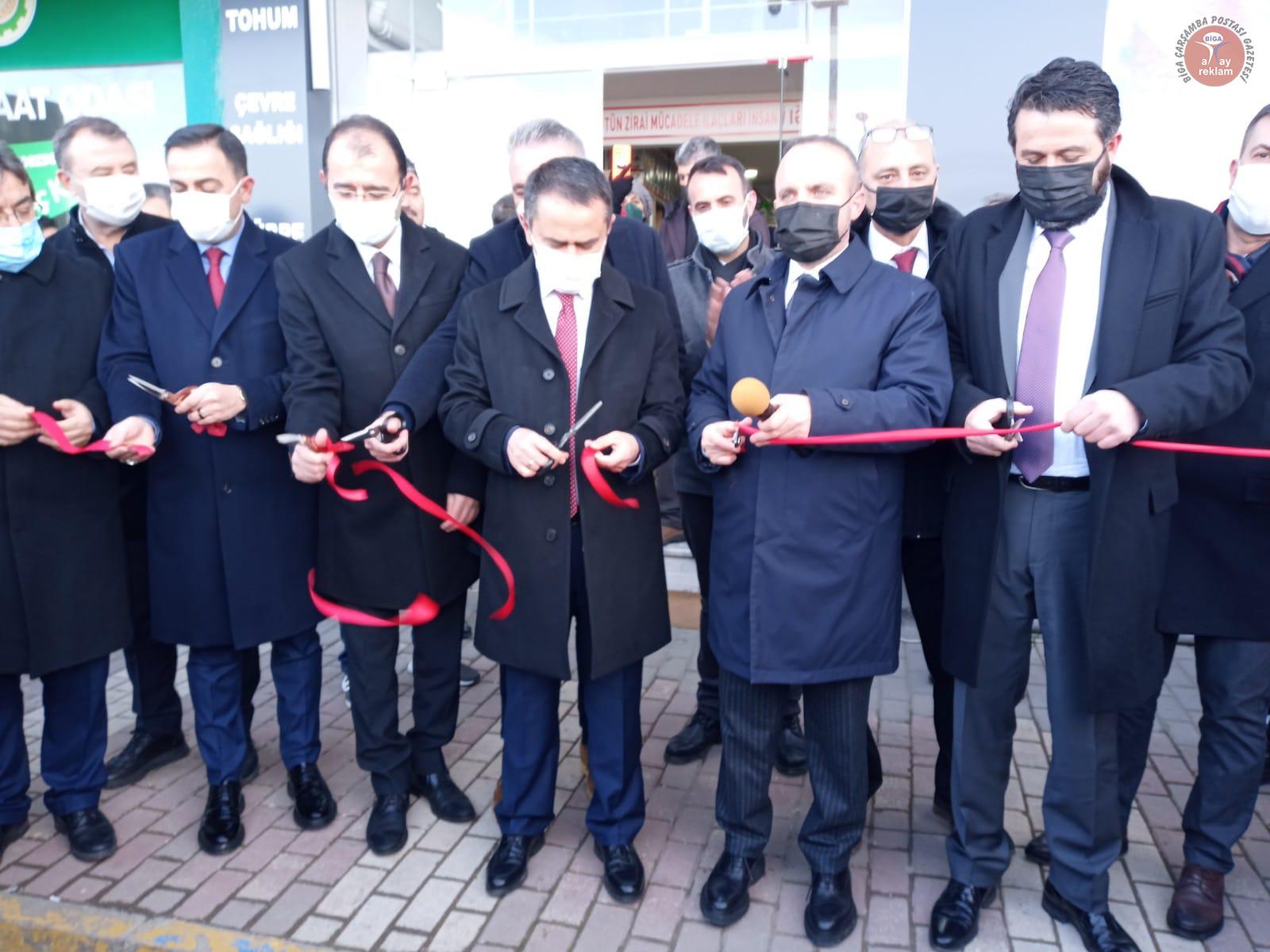 Yapılan konuşmaların ardından Vali İlhami Aktaş, AK Parti Grup Başkanvekili Çanakkale Milletvekili Bülent Turan ve beraberindeki heyet tarafından kurdele kesimi gerçekleştirilerek Biga Ziraat Odası İktisadi İşletme, dualarla ve hayırlı olsun temennileriyle açıldı.