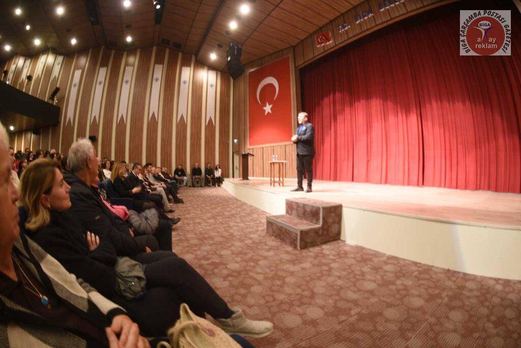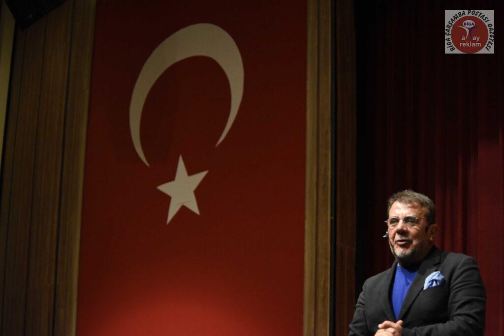 Biga Belediye Başkanlığının Atatürk Kültür Merkezinde düzenlediği “Atatürk’ü Anma Programı” muhteşemdi. Nebil Özgentürk’ün hazırladığı “Atatürk” belgeseli izlendi. Belediye Başkanı Alper Şen ve Bigalıların katıldığı programda belgesel görünümünden sonra, Nebil Özgentürk Çağdaş sanatçılardan, yazarlardan söz ederek zaman zaman ünlü şairlerin dizelerini de sıraladı. Atatürk ve Cumhuriyet’in önemini vurgulayan, ilkelerini anlatan Nebil Özgentürk’ün kendine has ve çok sevilen şiir okuma tarzı büyük alkış aldı. Biz de Songül ile Kumkent’ten Biga’ya giderek programı izledik. Program sonunda Biga Belediye Başkanı Alper Şen bir konuşma yaptı. Nebil Özgertürk’e teşekkür etti. Bir çiçek ve plaket verdi. Biga Belediye Başkanı yapacağı çalışmaları dillendirirken bu tür etkinliklerin AKM’de süreceğini söyledi. Ben de daha önce söz vermiştim. Beni çağırdıkları zaman AKM’ye gideceğim, Bigalılar için gösteri/söyleşiler yapacağım. Belediye Başkanı kültürel konulara ağırlık verileceğini söylüyor. Kendilerini takdir ettim.