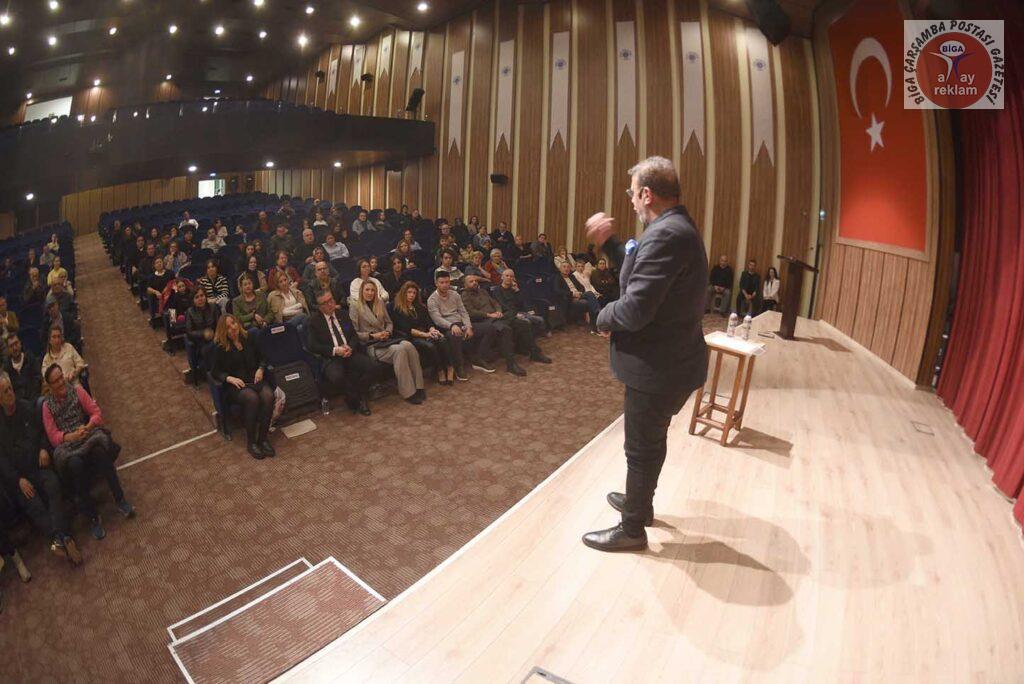 Nebil Özgentürk’ün yurt çapında hiç durmadan gezip belgeseller sunması, konuşmalar yapmasını çok önemsiyorum. O benim belgeselimi de yaptı. O belgeseli söz veriyorum İstanbul’dan sonra Biga’da sunacağım. Nebil’e “Kardeşim” diyorum. Çok başarılı işler yapıyor. Atatürk belgeselini içtenlikle izledik. Binden fazla belgesel yapan, bu konuda bir bellek olan Nebil kardeşime başarılar diliyorum. Biga Belediye Başkan Alper Şen, bana ait olan Priapos fotoğrafımı Nebil Özgentürk’e armağan etti.