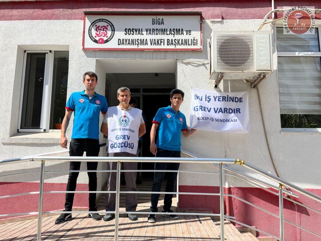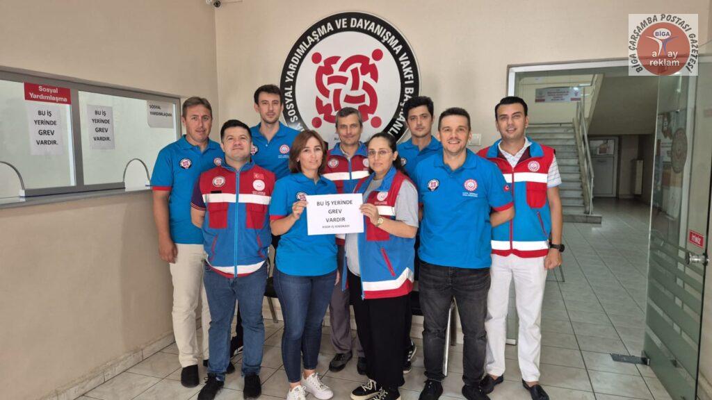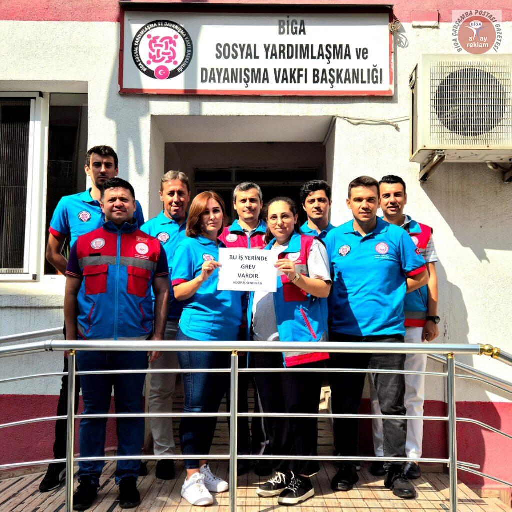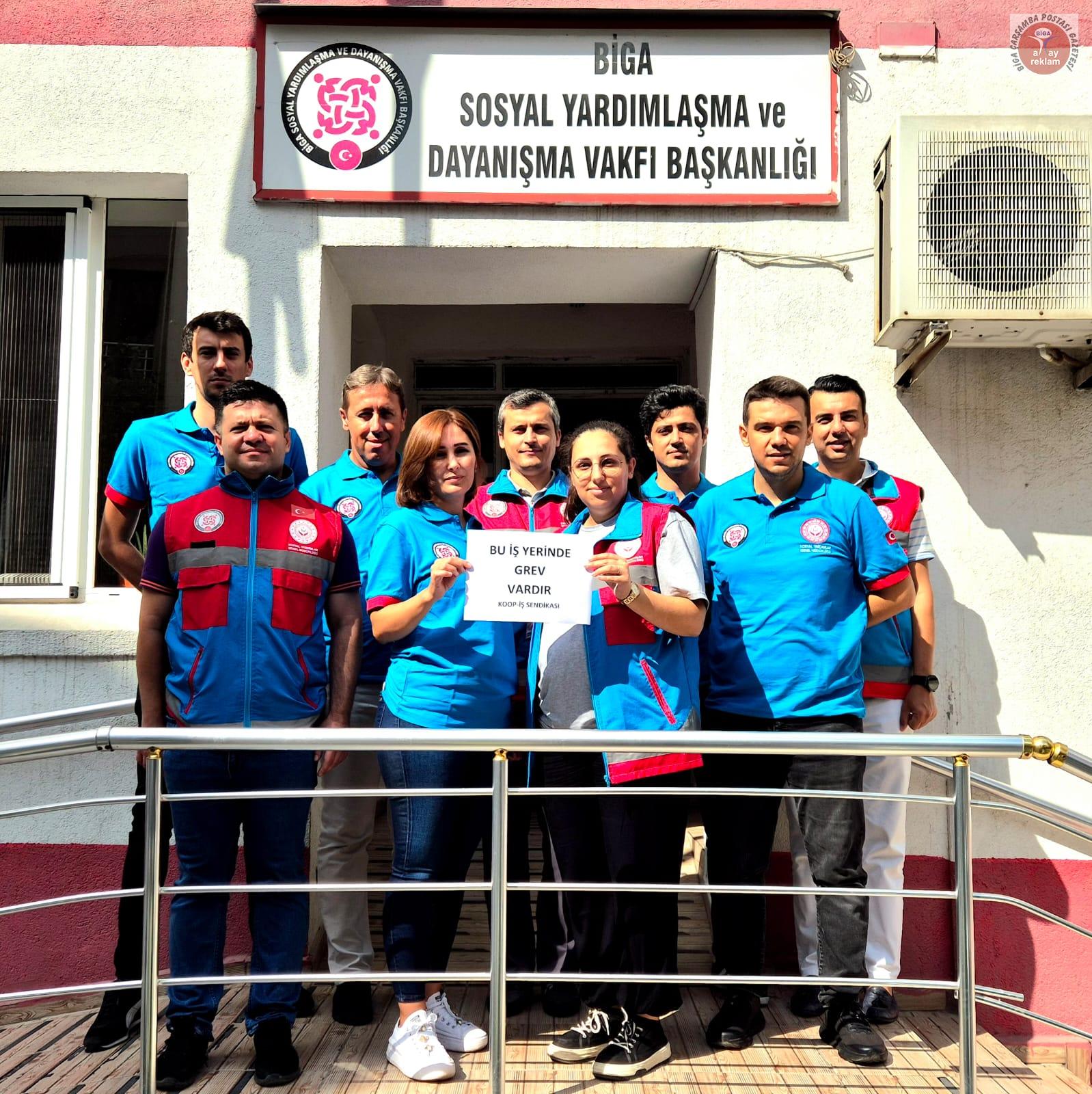 Aile ve Sosyal Hizmetler Bakanlığına bağlı Sosyal Yardımlaşma ve Dayanışma Vakıfları (SYDV) toplu iş sözleşmesi görüşmelerinin anlaşmazlıkla sonuçlanması üzerine çalışanlar greve gitti. Biga’da da grev başlarken, TÜRK-İŞ Genel Başkan Yardımcısı ve Koop-İş Sendikası Genel Başkanı Eyüp Alemdar açıklama yaptı.