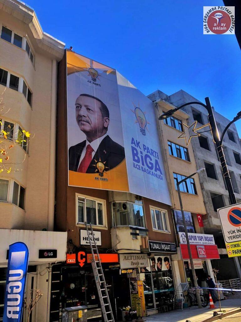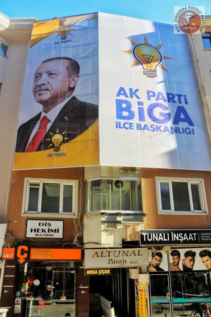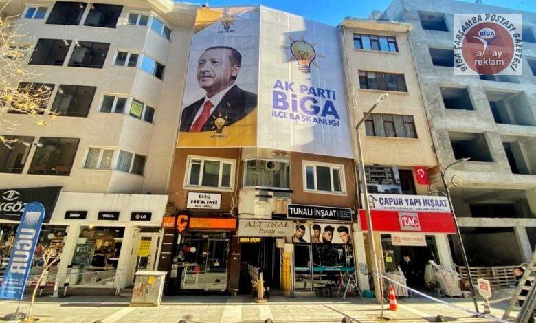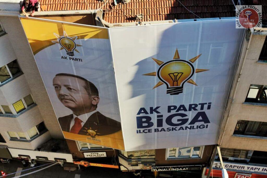 AK Parti Biga İlçe Başkanlığı’nın partiye kazandırdığı yeni hizmet binasının tabelaları takıldı.