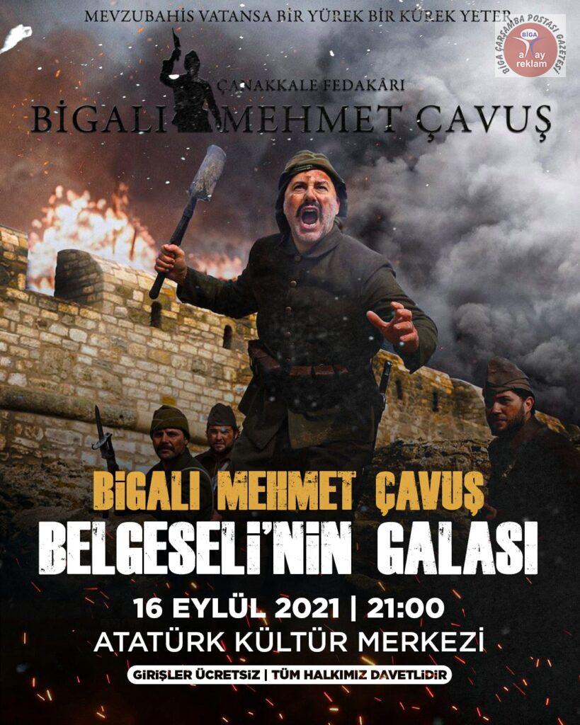 Biga Belediyesi ve Çanakkale Savaşları Tarihi Alan Başkanlığı tarafından hazırlanan, yönetmen ve yapımcı Gökhan Tarkan Karaman, Prof. Dr. İlber Ortaylı’ın anlatımı, senarist Cem Fakir ile Belgesel Danışmanı Ömer Arslan’ın çalışmalarıyla tamamlanan Çanakkale Fedakarı Bigalı Mehmet Çavuş Belgeseli’nin Seddülbahir Kalesi’nin ardından Biga’da da galası yapılacak. 18 Eylül Biga’nın düşman işgalinden kurtuluşunun 99. yıl dönümü kutlama programında yer alan belgesel, 16 Eylül 2021 Perşembe akşamı saat 21:00’da Atatürk Kültür Merkezi’nde Bigalılarla buluşacak.