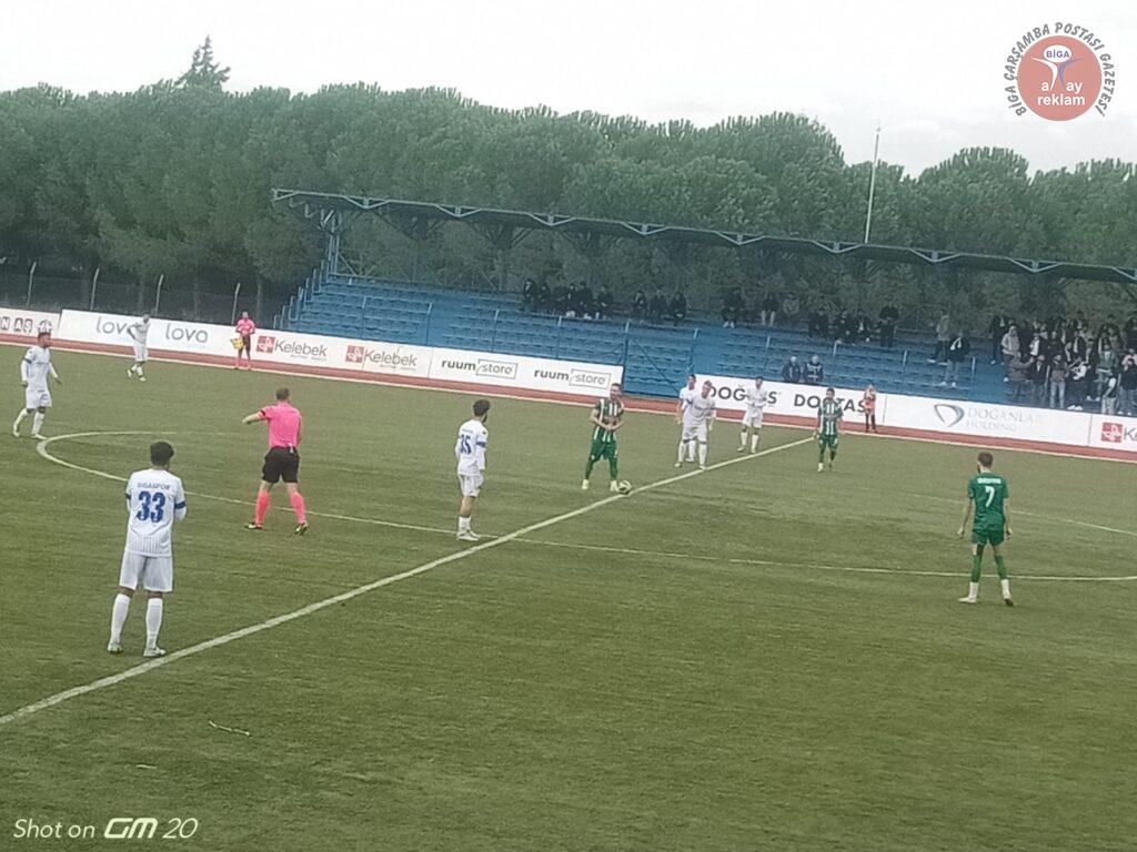 Bigaspor daha üstün futbol oynadığı maçı 2-0 kazandı. Soğuk havaya rağmen sporseverler tribünleri doldurdu. Bigaspor 18.dakikada korner atışı sonrası oluşan karambolde Görkem’in attığı gol ile 1-0 öne geçti. İlk yarı bu skorla sona erdi. İkinci yarıda karşılıklı ataklardaki gol pozisyonları cömertçe harcandı. Maçın 84.dakikasında Gümüşçayspor ataktayken kaptırılan top ile kontraatağa çıkan Bigaspor Enes’in kaleci ile karşı karşıya kaldığı pozisyonda topu ağlara göndermesi ile maçta 2-0 öne geçti. Kalan dakikalarda başka gol olmayınca maçın skoru belli oldu. Bigaspor 2 Gümüşçayspor 0