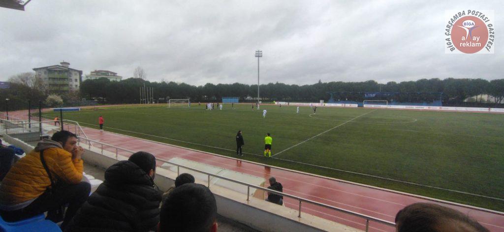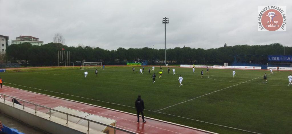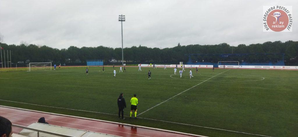 Karşılaşmaya iki ekip de kontrollü başladı. Mücadelenin 21. dakikasında konuk ekip Uzunköprüspor, Ercüment Eray Ataklı’nın golüyle 1-0 öne geçti. Geriye düşmesine rağmen oyundan kopmayan Bigaspor, taraftarının da büyük desteğiyle rakip kalede baskısını artırdı. Mavi-beyazlı ekibin beraberlik golü 29. dakikada Enes Özenç’ten geldi. Bu golle birlikte tribünlerde büyük bir sevinç yaşanırken, ilk yarı 1-1’lik eşitlikle tamamlandı.