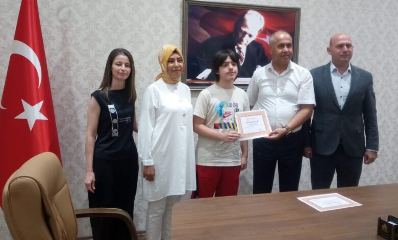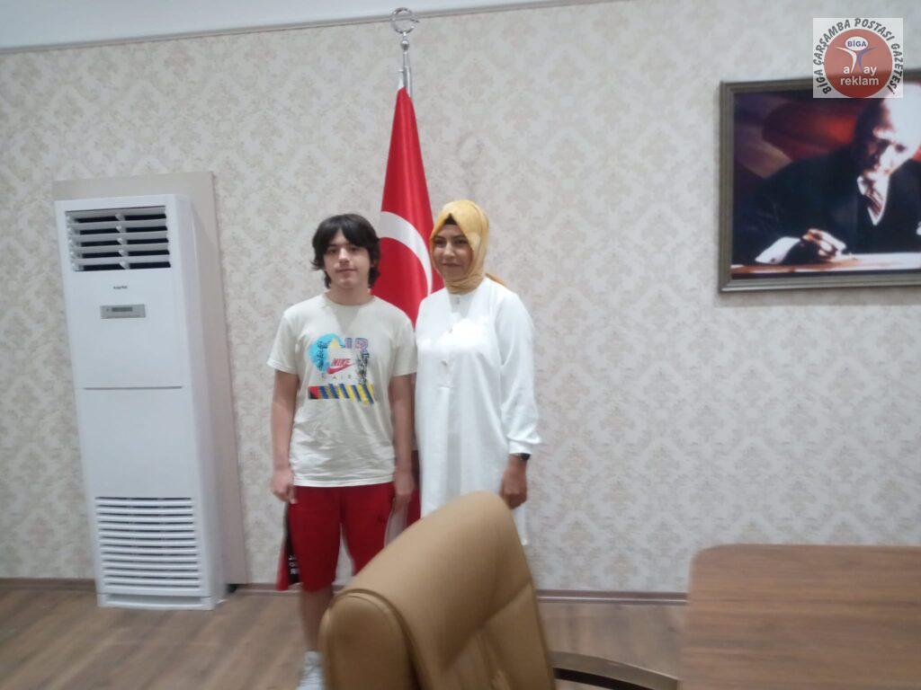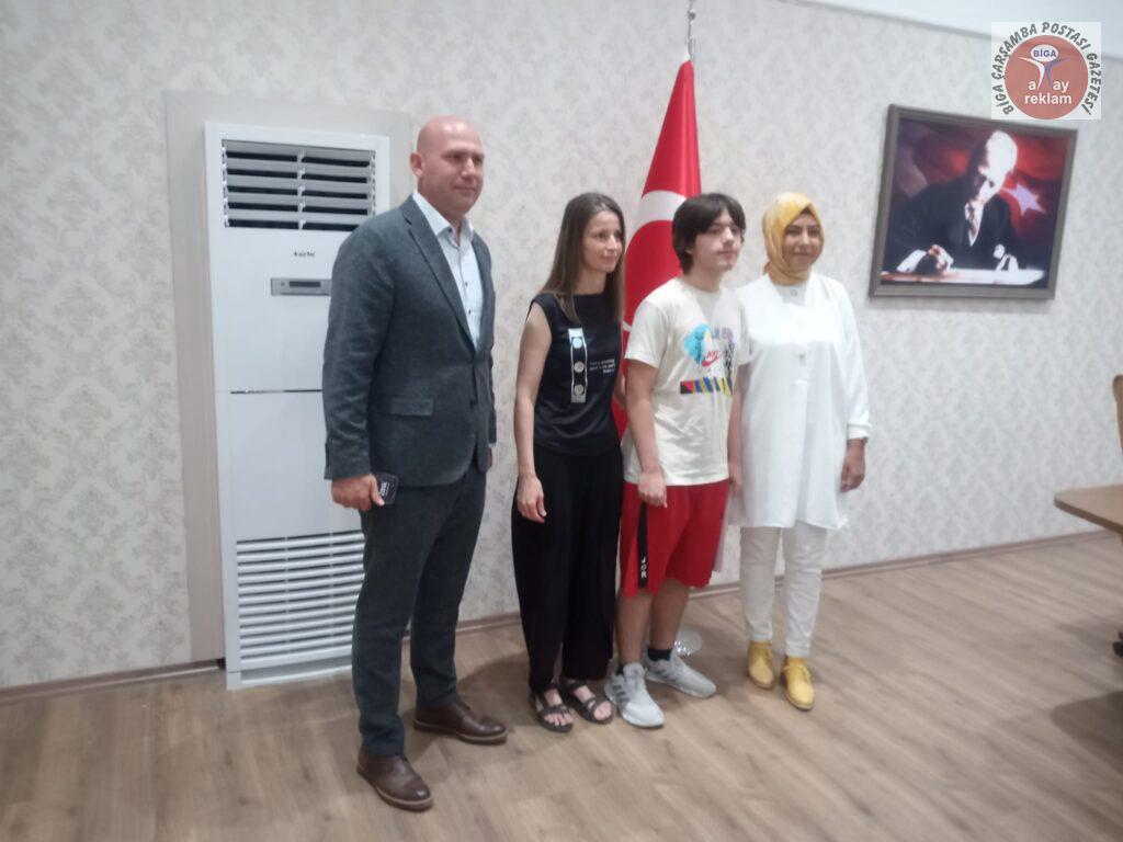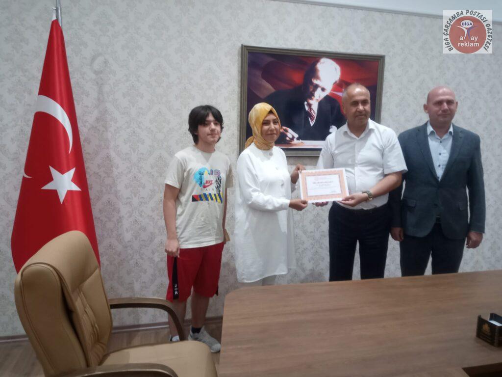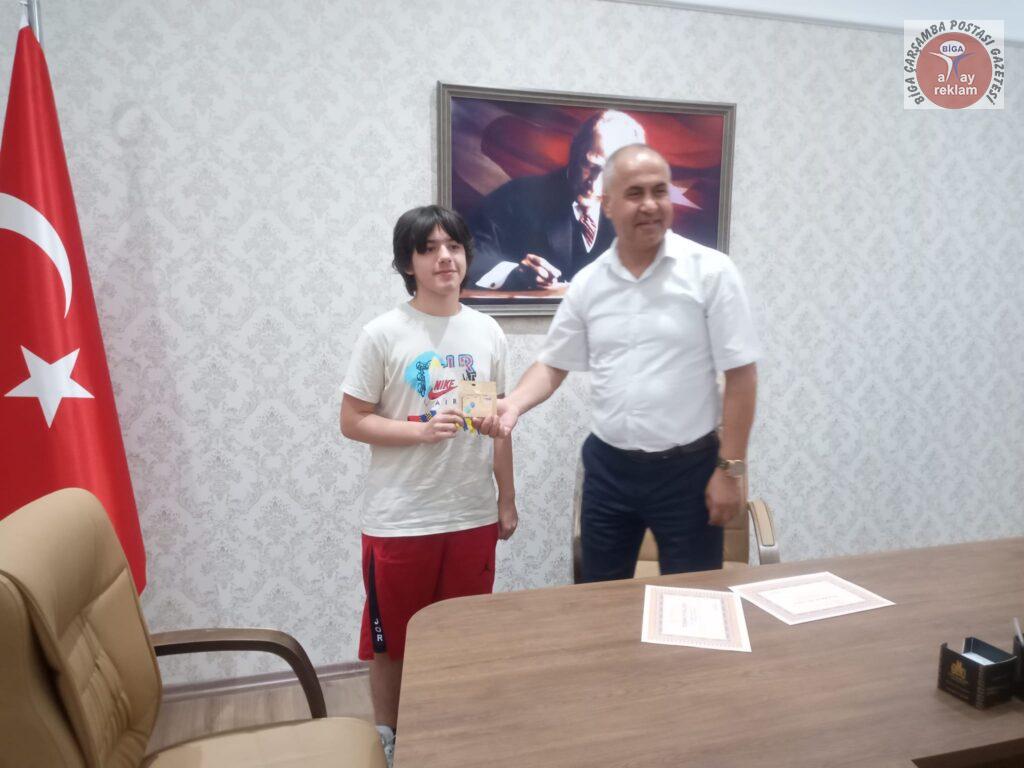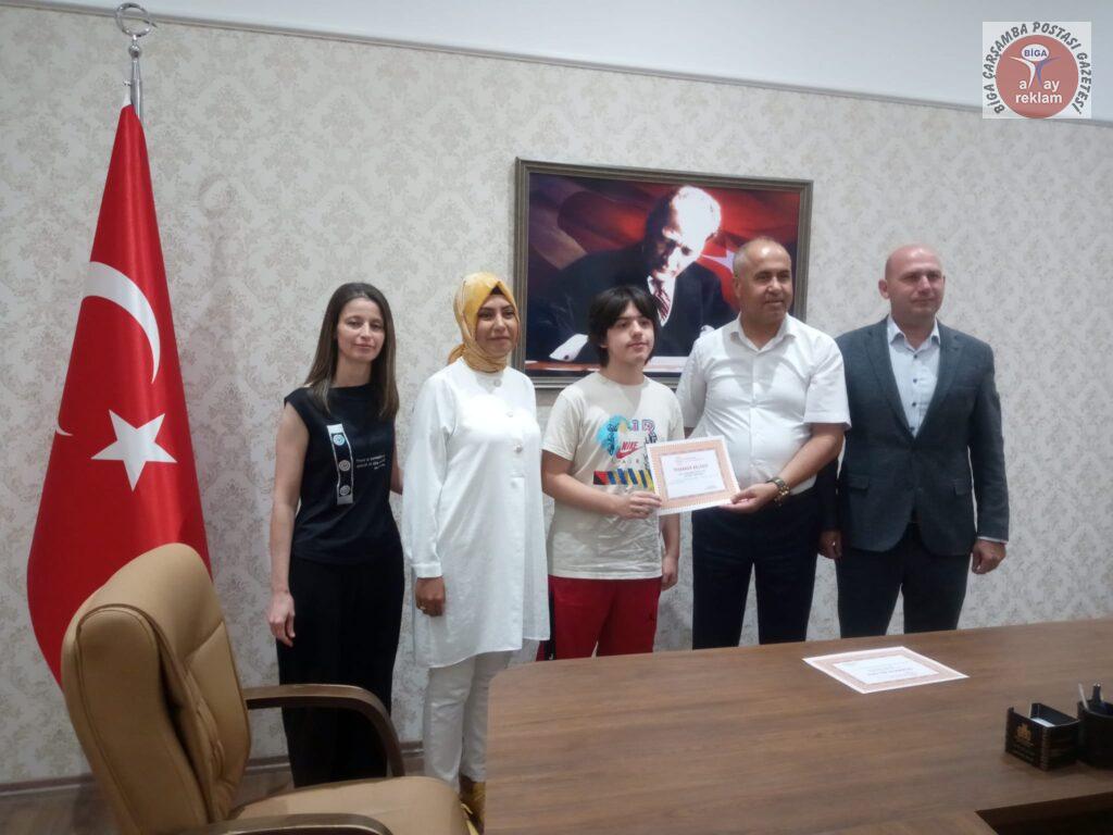Semyan Güney Özoğulları, BİLSEM yönetimi ve Biga İlçe Milli Eğitim Müdürü Erkan Bilen tarafından belge ve hediye çekiyle ödüllendirildi. Biga Bilim ve Sanat Merkezi Müdür yardımcısı ve Matematik öğretmeni Zöhre Özdemir Kapancı danışmanlığında Ortaokul Matematik dalında 4780 kişi içinde 27. olarak başarılı olan Semyan Güney Özoğulları ve ailesi tebrik edildi, başarılarının devamı temennisinde bulunuldu.