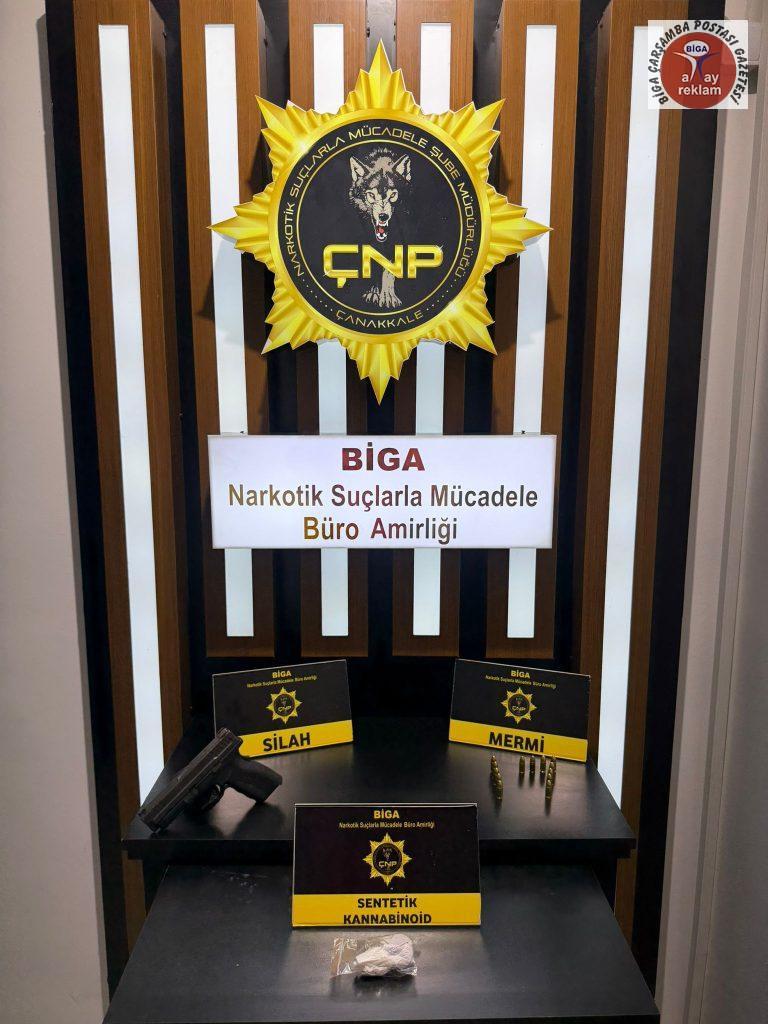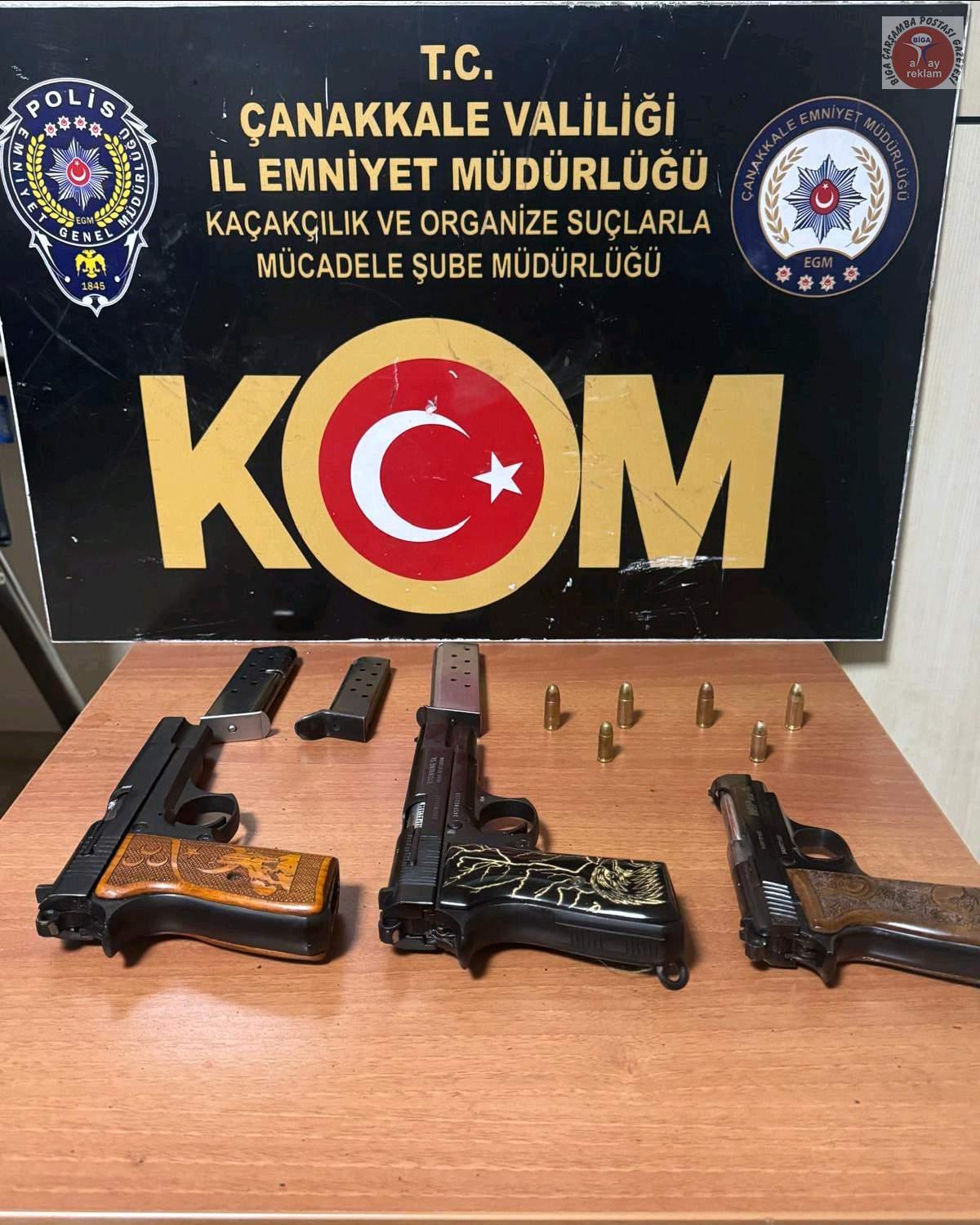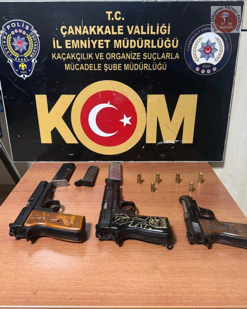 6136 Sayılı Kanunu Muhalefet suçundan adli makamlara sevk edilen bir şahıs tutuklanmış, 3 adet tabanca ve 6 adet fişek, 4 adet telefon ve 480 Türk Lirası ele geçirilmiştir.