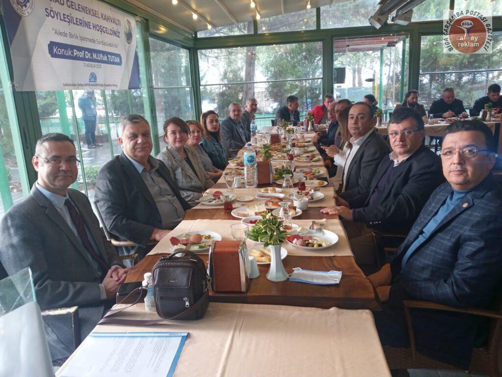 Biga Sanayici ve İş Adamları Derneği’nin (BİSİAD) düzenlediği kahvaltılı toplantının konuğu Prof.Dr.Mehmet Ufuk Tutan oldu.Protokol üyeleri, BİSİAD Yönetimi ile üyeleri ve basın mensuplarının katıldığı toplantı 11 Aralık Cumartesi günü Köşdere Otel’de gerçekleşti.