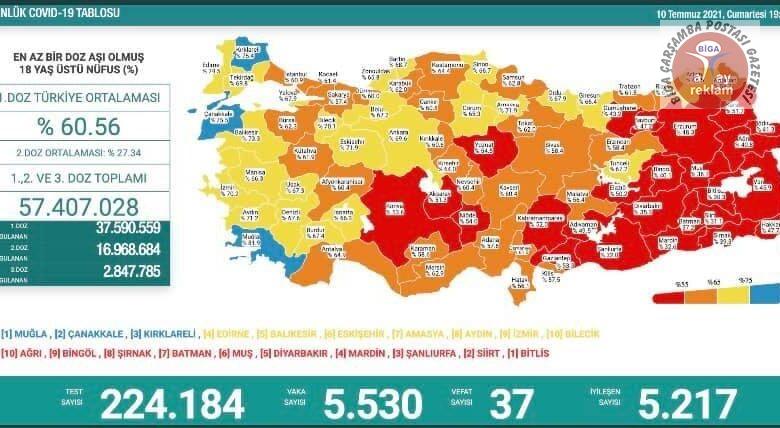 Sağlık Bakanlığı tarafından açıklanan günlük “Covid-19 Bilgilendirme Platformunda” yüzde 75,2 aşılama oranı ile Çanakkale’nin rengi sarıdan maviye döndü. Sağlık Bakanı Dr.Fahrettin Koca Çanakkale’nin sosyal medya hesabından yaptığı paylaşım ile örnek göstererek tebrik etti. Yapılan açıklamada şu ifadelere yer verildi; “Aşılamanın hızlanmasıyla ve planlanan koordinasyon sayesinde oluşturulan aşı uygulama noktalarına vatandaşlar yoğun ilgi gösterdi. Covid-19 ile mücadelede ilk günden bu yana büyük bir özveri ve titizlikle görev yapan her kademedeki sağlık çalışanlarımız aşı çalışmalarında da aynı özveri ve fedakârlıkla görev yapmışlardır. Tüm sağlık çalışanlarımıza teşekkür ediyoruz. Covid-19 ile mücadelede il genelinde vatandaşlarımız büyük duyarlılık göstererek, aşı oldu. Bu sayede aşılamada rakamlarımız arttı. Duyarlı davranarak aşı olan tüm vatandaşlarımıza teşekkür ediyoruz.