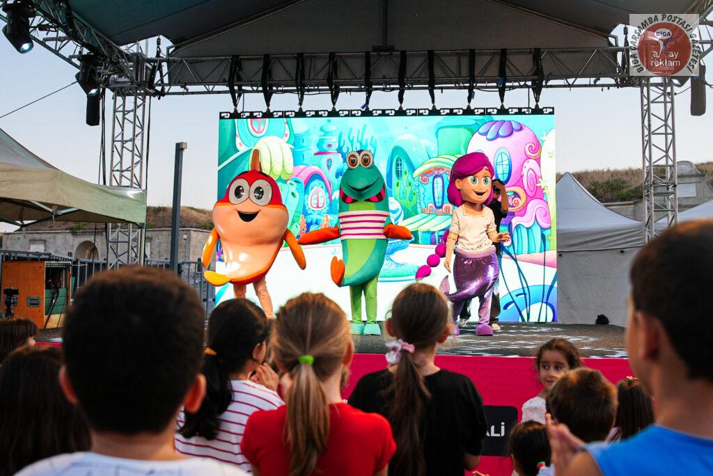 Anadolu Hamidiye Tabyası Çocuk Etkinlik Alanı’nda kurulan birbirinden renkli aktivitelerin, atölye çalışmalarının, sahne gösterilerinin, tiyatroların, oyun alanlarının ve daha birçok etkinliğin yer aldığı “Çocuk Köyü” minik misafirlerini ağırlamaya devam ediyor. Festivalin dördüncü gününde çocuklar, “Maceracı Yüzgeçler” çocuk tiyatrosu ve “Balon katlama” etkinliklerinde gönüllerince eğlendi.