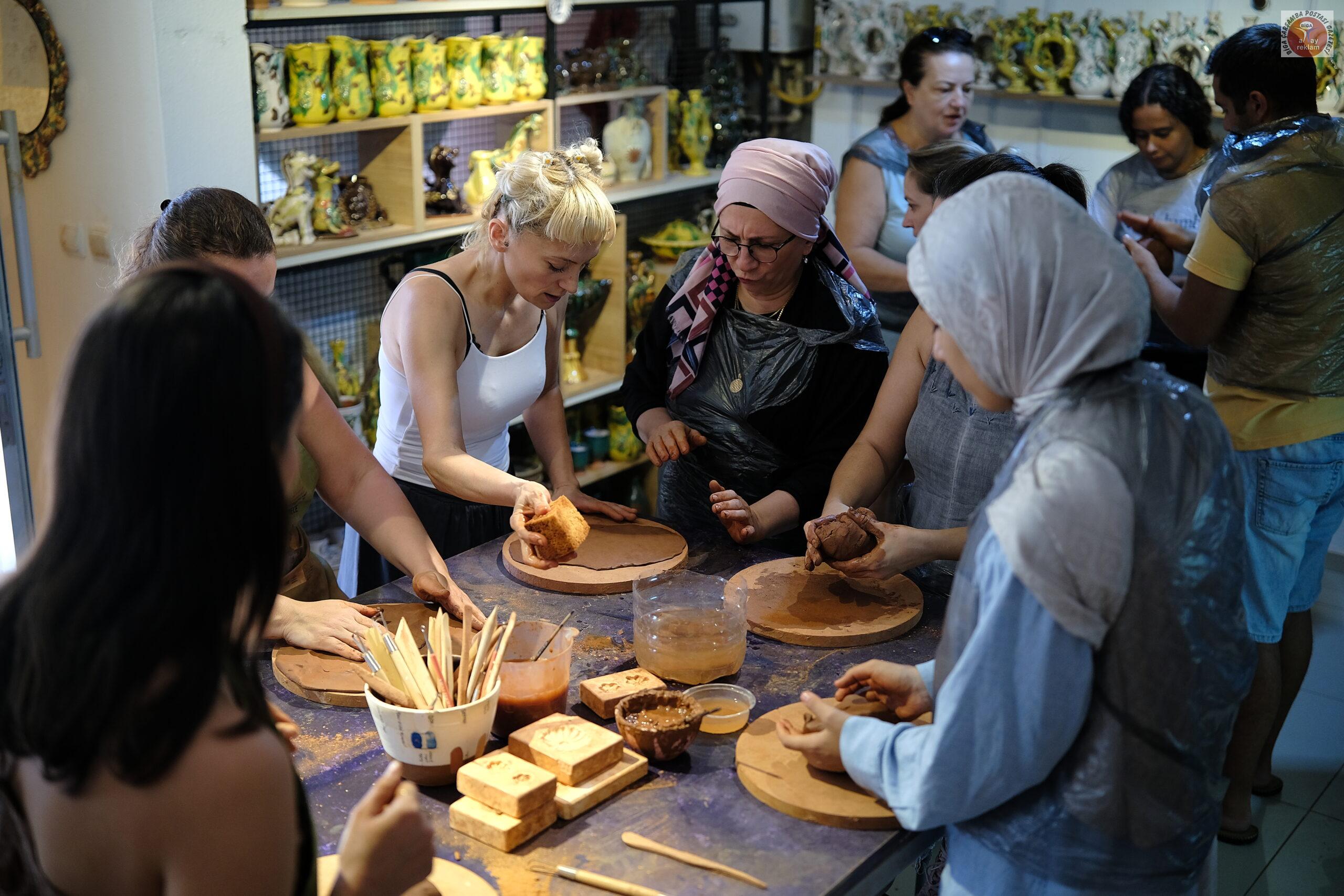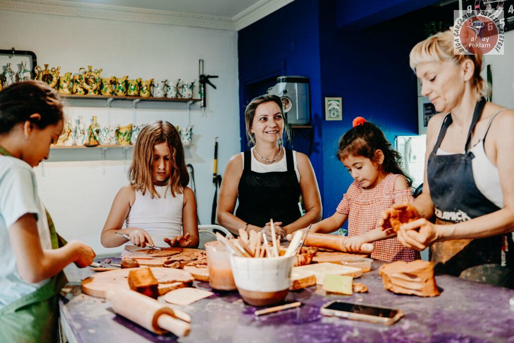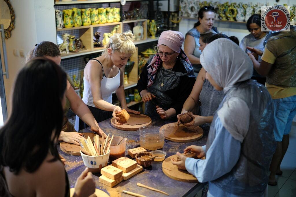 Çanakçı Seramik Atölyesi’nde gerçekleştirilen seramik çalışmaları ile gelenek el sanatlarında yaratıcılıklarını geliştiren katılımcılar, Eski Liman Müdürlüğü’nde düzenlenen “Kadının Düş Hali Cam Atölyesi” ile kadın teması etrafında özgün eserler üretme fırsatı buldu.