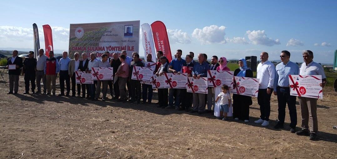 Saygı duruşu ve İstiklal Marşı’nın okunmasıyla başlayan programda halk oyunları ekibinin gösterisi büyük alkış aldı. Modern tarım yöntemlerinin yaygınlaşmasıyla birlikte üretimde verimliliğin artması ve suyun daha verimli kullanılması adına büyük önem taşıyan bu projede yapılan konuşmaların ardından, yangından zarar gören üreticilere destek veren kurum ve kuruluşlara teşekkür belgeleri takdim edildi.
