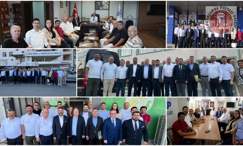 CHP Çanakkale İl Başkanı Levent Gürbüz, CHP Bursa Milletvekili Orhan Sarıbal, CHP Kırklareli Milletvekili Fahri Özkan, CHP Edirne Milletvekili Baran Yazgan ve İl Genel Meclis Üyeleri, Biga Belediye Başkanı Alper Şen, Gümüşçay Belediye Başkanı Hasan Kırım, Biga Ticaret ve Sanayi Odası, Biga Ziraat Odası, Biga Esnaf ve Sanatkarlar Odası ve Biga Ticaret Borsasını ziyaret ettiler. Ziyaretler esnasında heyete CHP Biga İlçe Başkan Yardımcısı Özgür Yılmaz, Biga Belediye Başkan Yardımcısı Ergün Tulnay ve CHP Biga İlçe Kadın Kolları Başkanı Aslı Ersöz eşlik etti.