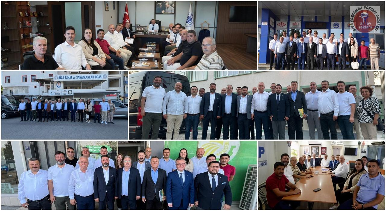 CHP Çanakkale İl Başkanı Levent Gürbüz, CHP Bursa Milletvekili Orhan Sarıbal, CHP Kırklareli Milletvekili Fahri Özkan, CHP Edirne Milletvekili Baran Yazgan ve İl Genel Meclis Üyeleri, Biga Belediye Başkanı Alper Şen, Gümüşçay Belediye Başkanı Hasan Kırım, Biga Ticaret ve Sanayi Odası, Biga Ziraat Odası, Biga Esnaf ve Sanatkarlar Odası ve Biga Ticaret Borsasını ziyaret ettiler. Ziyaretler esnasında heyete CHP Biga İlçe Başkan Yardımcısı Özgür Yılmaz, Biga Belediye Başkan Yardımcısı Ergün Tulnay ve CHP Biga İlçe Kadın Kolları Başkanı Aslı Ersöz eşlik etti.