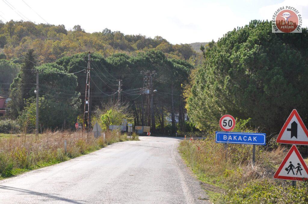 Bakacak Köyü, Kahvetepe Köyü’nden sonra gelen ve ismini taşıdığı Bakacak yolunun içinden geçtiği köydür. Köyün eski ismi İpkaiye’dir ve etrafında Gürçeşme, Türkbakacak, Cihadiye, Danişment ve Kahvetepe ile komşudur. Biga merkeze 17 km, Çanakkale merkeze ise 113 km uzaklıkta bulunan yerli köydür. Köyden Çanakkale’ye ulaşım sağlayacak kişi stabilize yoldan Danişment’e devamında ise asfalt yoldan Pekmezli ve Ağaköy’e ulaşarak Çanakkale-Bursa karayoluna çıkabilir. Köyün muhtarı Resul Metin’dir.