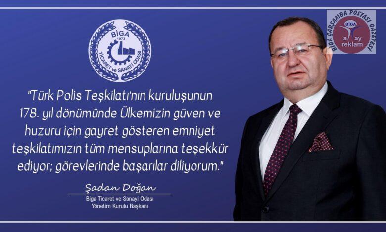 Biga TSO Başkanı Şadan Doğan, Türk Polis Teşkilatı’nın kuruluşunun 178’nci yıl dönümünü kutladı.