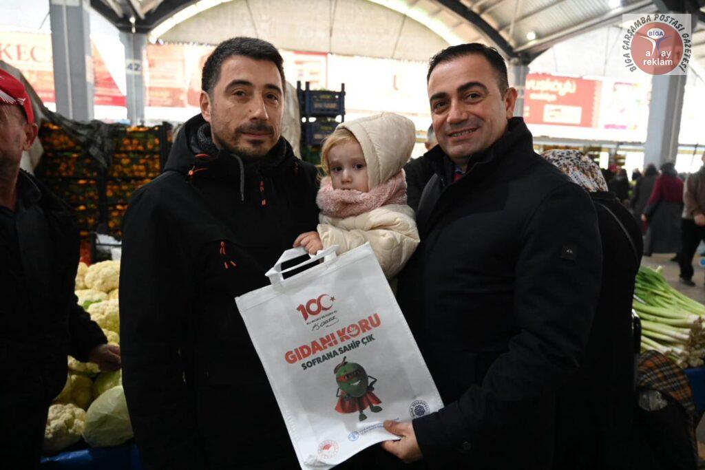 Biga Belediyesi ve Çanakkale İl Tarım ve Orman Müdürlüğü, gıdayı korumak, gıda israfını önlemek ve sürdürülebilir tüketimi teşvik etmek için yapılan etkinlikte Biga Kapalı Pazar yerinde alışverişe gelen vatandaşlara ‘Gıdanı Koru, Sofrana Sahip Çık’ temalı çanta, pazarcı esnafına önlük dağıtıldı.