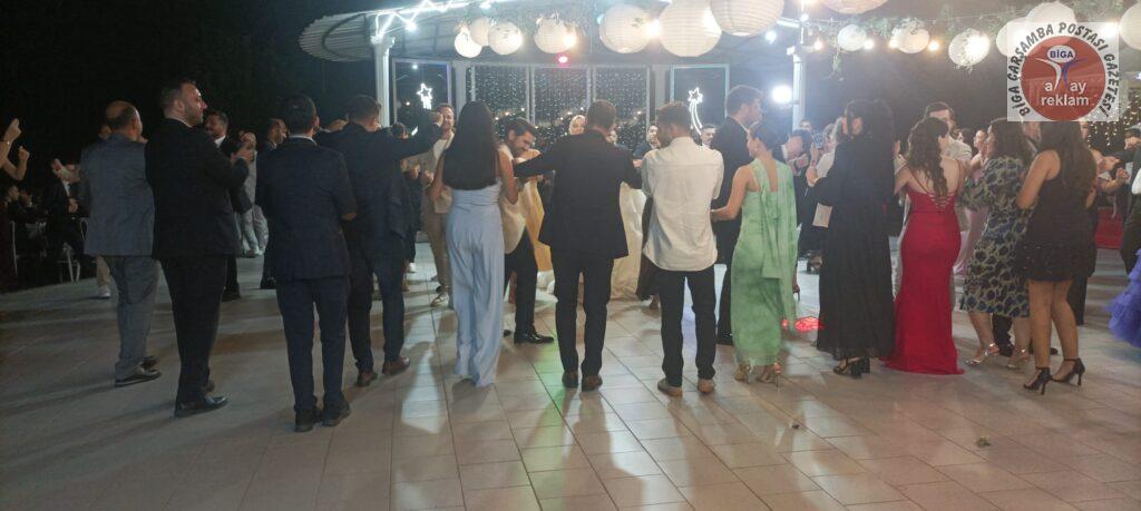 Düğüne yoğun katılım yaşandı. Genç çiftin özel dansı beğeni ile izlendi. Genç çifti ve ailelerini en mutlu günlerinde sevenleri ve dostları yalnız bırakmadılar. Geceye katılanlar geç saatlere kadar gönüllerince eğlendiler. Biga Çarşamba Postası Gazetesi olarak genç çifte ve ailelerine mutluluklar dileriz.