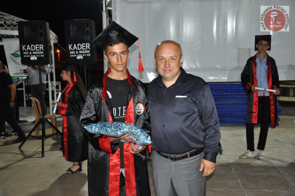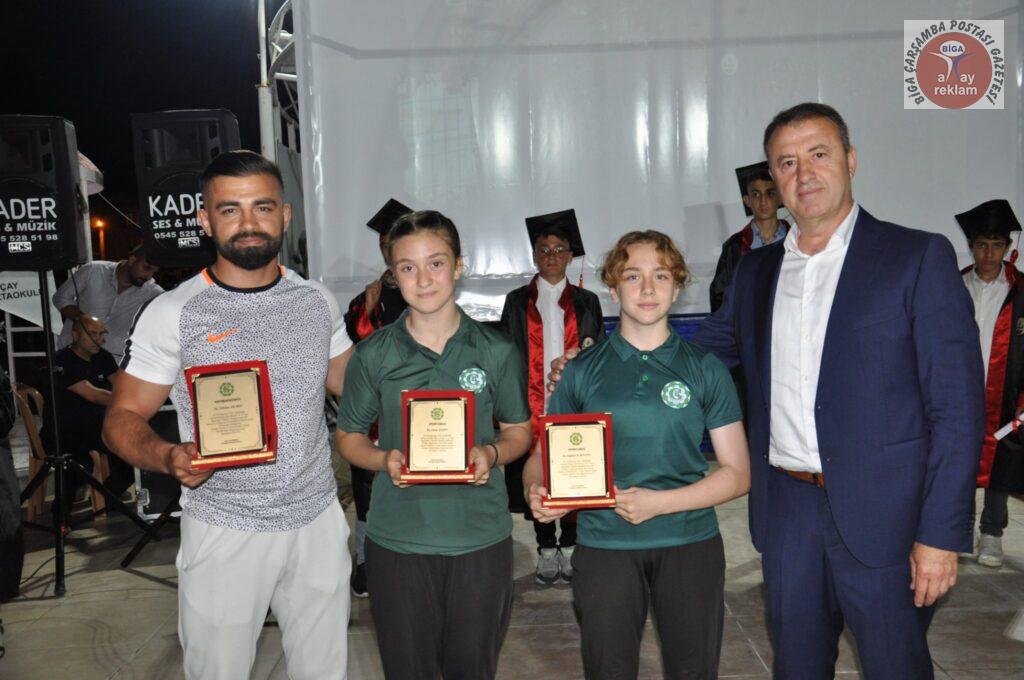 Gümüşçay Atatürk Ortaokulu’nda 2021-2022 eğitim öğretim yılı mezuniyet töreni düzenlendi. Düzenlenen tören’de Gümüşçay Belediyesi güreş takımı nefes kesen bir gösteride bulundu. Türkiye Güreş Şampiyonası’nda dereceye giren sporculara ve Güreş Hocası Gökhan Akarsu’ya Gümüşçay Belediye Başkanı Adnan Pastırmacı tarafından plaket takdim edildi. Okul 1.si Işıl Sezen’e, okul 2.si Burak Tutan’a, okul 3.sü İdris Can Yıldız’a hediyeler verildi. Tören kep atma ile son buldu. Pastırmacı yapmış olduğu konuşmasında mezun olacak öğrencilere bundan sonraki okul hayatlarında başarılar diledi. Düzenlenmiş olan mezuniyet programına, Gümüşçay Belediye Başkanı Adnan Pastırmacı, Gümüşçay Belediye Meclis Üyeleri, Gümüşçay Karakol Komutanı Erdal Doğan, Eğridere Köyü Muhtarı Hüseyin Doğru katıldı.