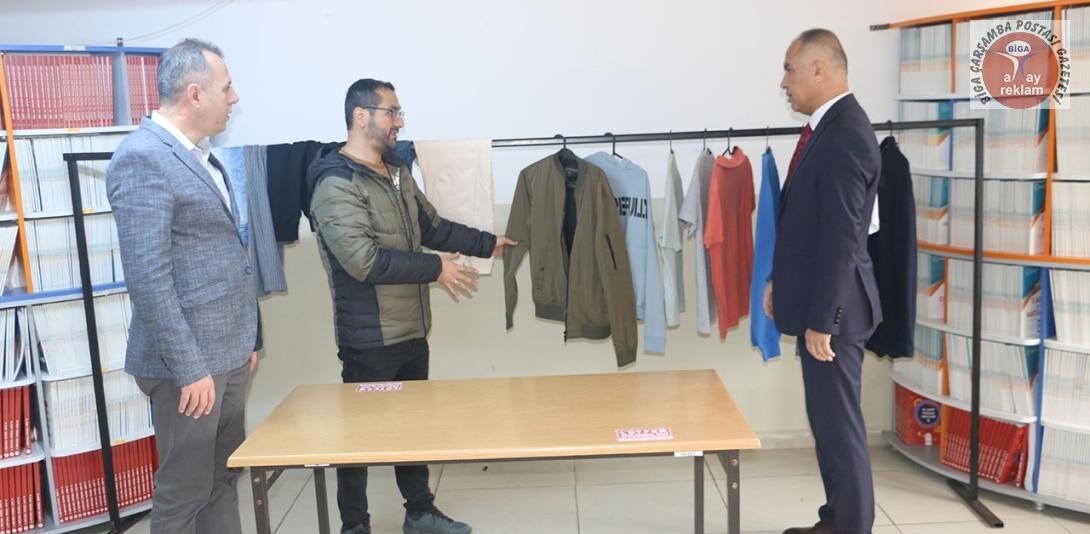 İÇDAŞ Biga Mesleki ve Teknik Anadolu Lisesini ziyaret eden Biga İlçe Milli Eğitim Müdürü Erkan Bilen’e okul müdürü Cengiz Ercan proje ile bilgi verdi. Proje kapsamında, öğrenciler giymedikleri fakat kullanılabilir durumda olan temiz kıyafetleri İyilik Gardırobuna getirerek takas edebiliyor ya da ihtiyacı olan öğrenciler bu kıyafetleri ücretsiz olarak alabiliyor. Bu sayede öğrenciler hem sürdürülebilir tüketimi teşvik ediyor hem de ihtiyacı olan arkadaşlarına destek oluyor.