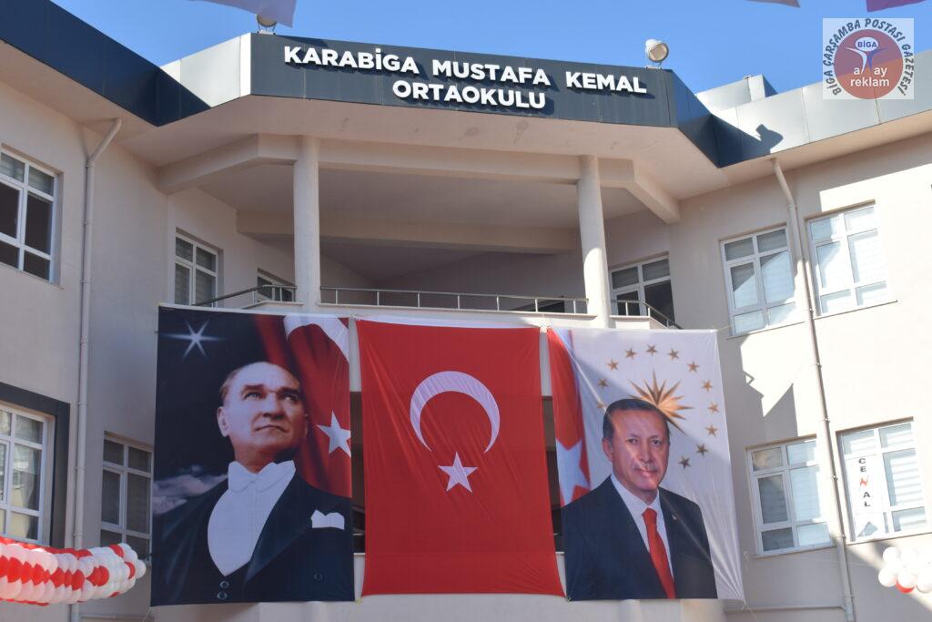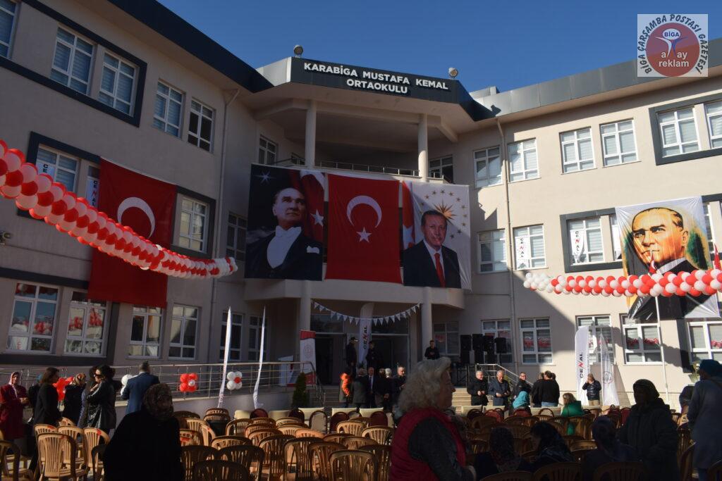 Yapılan konuşmaların ardından Karabiga Mustafa Kemal İlkokulu ve Ortaokulunun açılış kurdelesi kesildi. Açılışın törenini sonrasında protokol üyeleri tarafından 4 katlı,18 derslik, 3 idare odası, öğretmenler odası, rehberlik servisi, özel eğitim sınıfı, müzik sınıfı, teknoloji tasarım sınıfı, görsel sanatlar salonu, yemekhane, laboratuvar, kütüphane, bilgisayar salonu, çok amaçlı salon, personel odası, okul aile birliği toplantı odalarından oluşan Karabiga Mustafa Kemal İlkokulu ve Ortaokulu gezilerek incelemelerde bulunuldu.