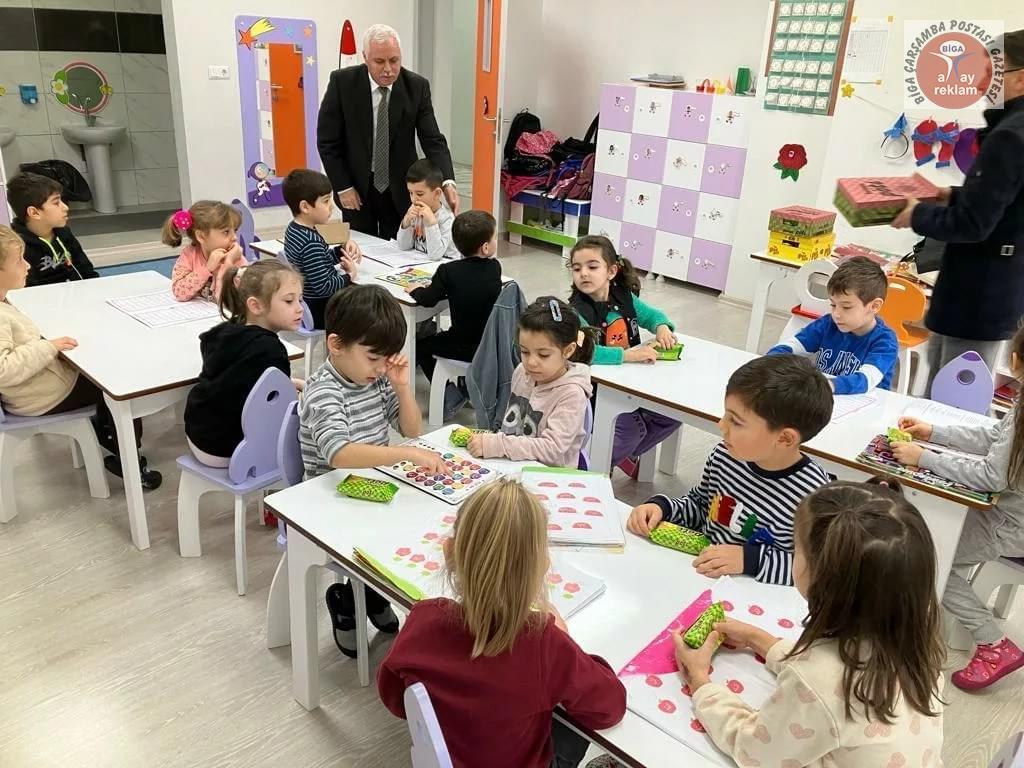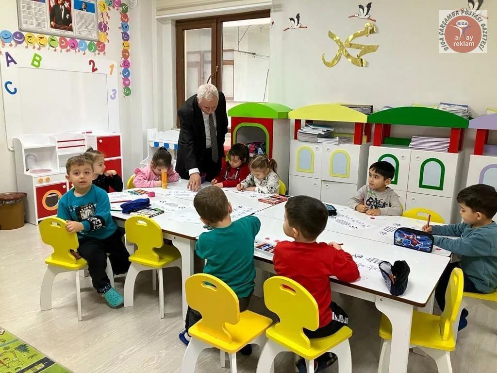 Biga İlçe Müftüsü Kemal Karadeniz, Biga Müftülğü bünyesinde eğitim-öğretime devam eden Sakarya Mahallesi 4-6 Yaş Kur’an Kursunu ziyaret etti.