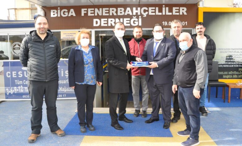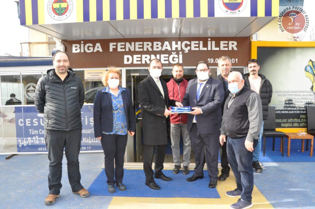 Biga’ya atandıktan sonra her kesimden hoşgeldin ziyaretinde bulunulan Biga Kaymakamı Erdinç Dolu iadeyi ziyaretlerine devam ediyor. Dolu 02 Mart Çarşamba günü Biga Fenerbahçeliler Derneği Yönetimini ziyaret etti. Dernek lokalinde gerçekleşen ziyarete Biga Fenerbahçeliler Derneği Başkanı Arda Bozkurt, yönetim kurulu üyeleri Nermin Kunt, Cihan Ertaş, Zafer İşçi, Barış Çetin, İsmail Kutlu, Kadir Atay hazır bulundu. Yapılan sohbetlerin ardından Biga Kaymakamı Erdinç Dolu kendisini ağırlayan Dernek başkanı ve yönetimine teşekkür ederken, Biga Fenerbahçeliler Derneği Başkanı Arda Bozkurt’ta Biga Kaymakamı Erdinç Dolu’ya ziyareti için teşekkür ederek dernek ürünlerinden hazırlanan hediye paketi sundu.