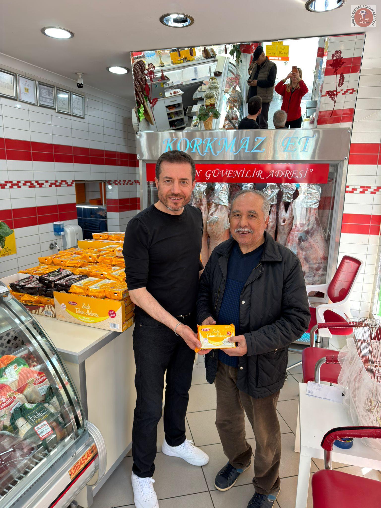 Bu hafta Korkmaz Et tezgâhlarından alışveriş yapan tüm müşterilerine 500 paket tahin helvası hediye ediliyor. Korkmaz Et bu kampanyalarla hem ev ekonomisine katkı sağlıyor hem de tatlı bir mutluluk dağıtıyor. Korkmaz Et sahibi Muharrem Korkmaz, “Korkmaz Et olarak sadece et satan bir işletme değiliz; Bigamızın, köylerimizin ve bölgemizdeki üreticilerimizin ürünlerini değerlendiren, müşterilerimizle gönül bağı kuran bir aileyiz. Her hafta Salı günü yaptığımız hediyeler de bu hafta 500 paket tahin helvası var. Tüm müşterilerimize afiyet olsun diyoruz.” dedi.
